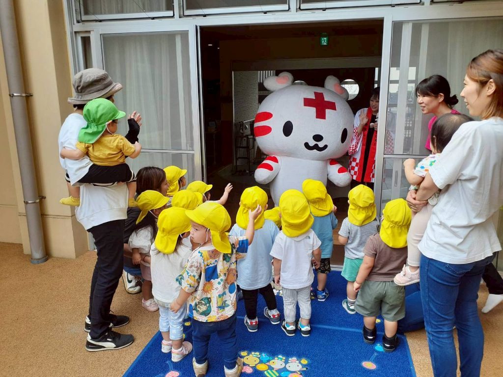 10月7日(火) 福井赤十字病院が100周年を迎えたとの事で、赤十字病院の公式キャラクターであるハートラちゃんが遊びに来てくれました。 ハートラちゃんへの質問コーナーでは「ハートラちゃんは何歳ですか?」「日赤にはい...