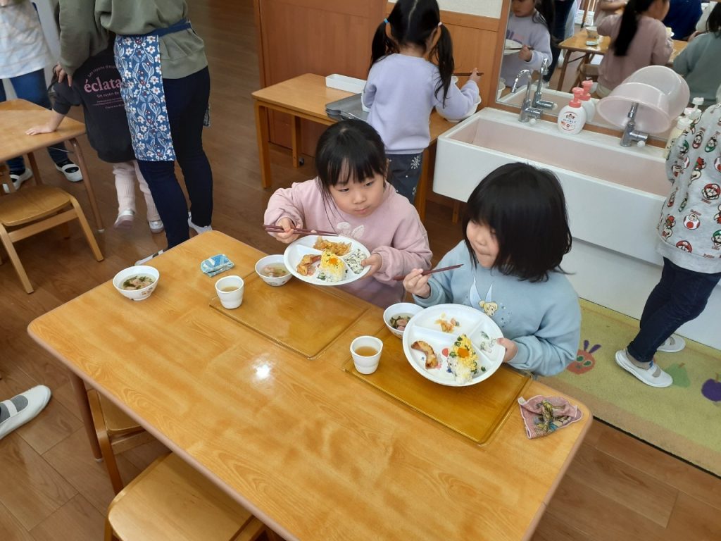 食事では、ひし餅の形をしたちらしずしに大喜びの子ども達でした。
