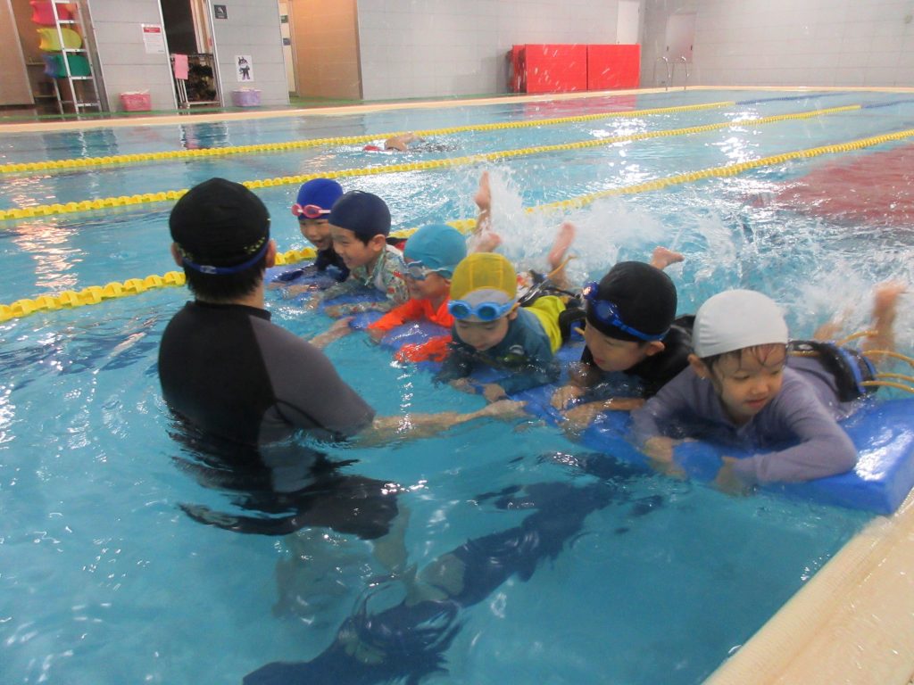 氷を滑らせると色が付き、興味津々で楽しんでいた子ども達。手のひらや足にも付け、「つめたいね」とお話する子もいました。