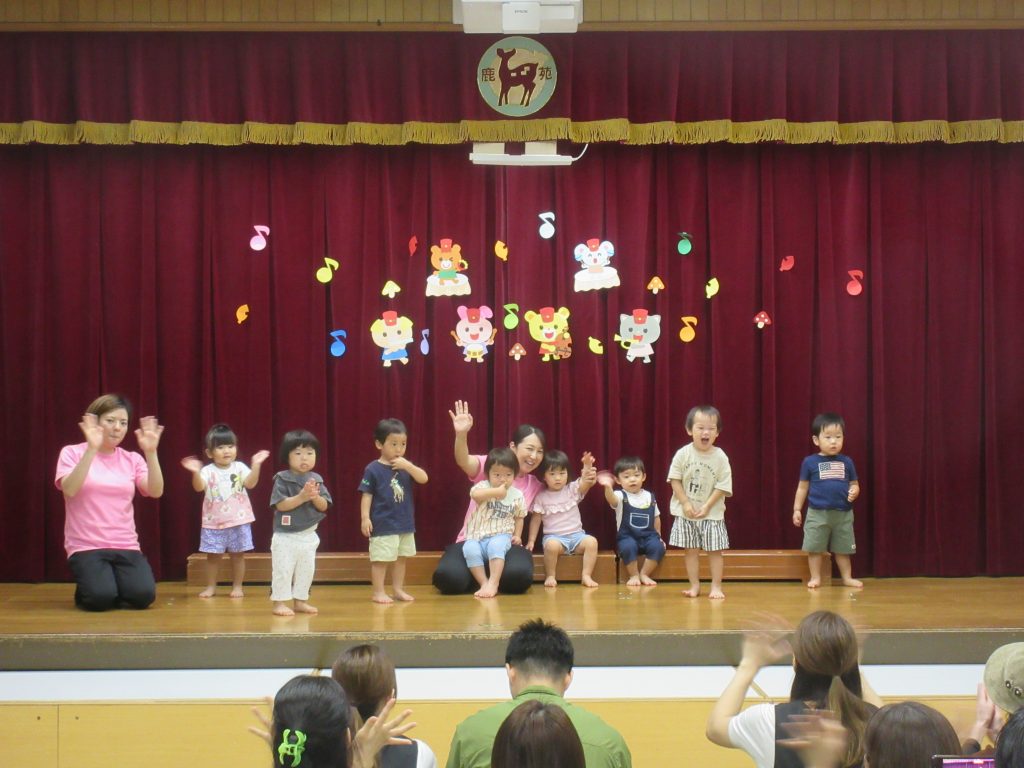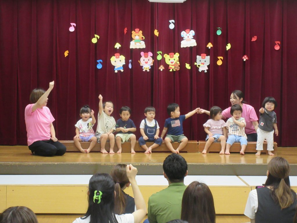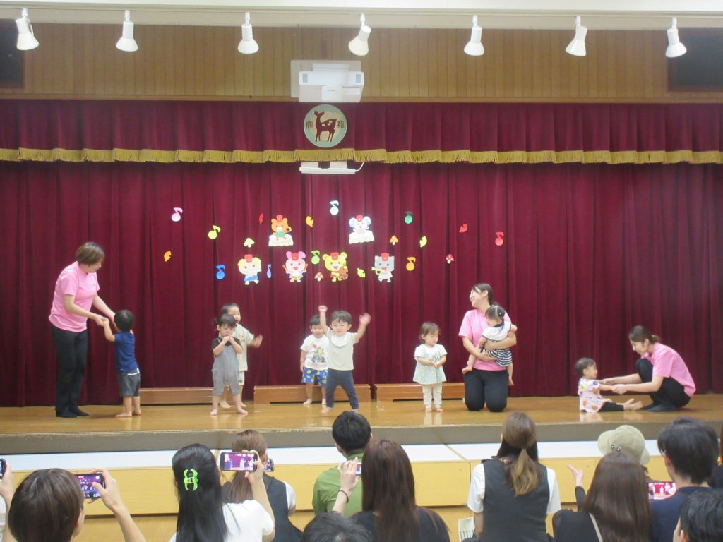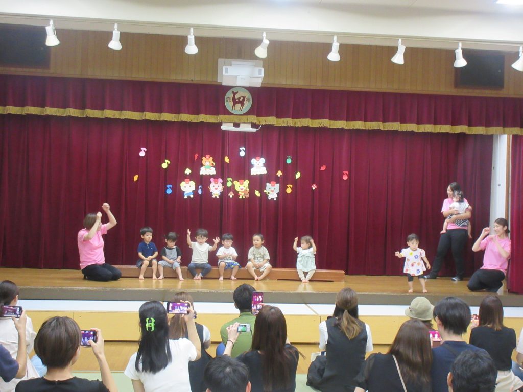 ミニミニ発表会では、たくさんのお家の方の前で、ちょっぴり泣いてしまうお子さんや、驚いた様子でかたまっているお子さん、普段通り手遊びや踊りを楽しむお子さん等、様々な姿が見られました。
