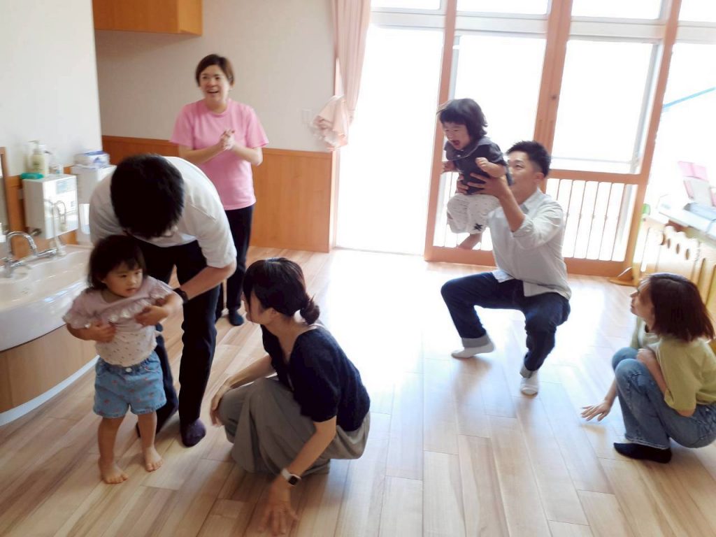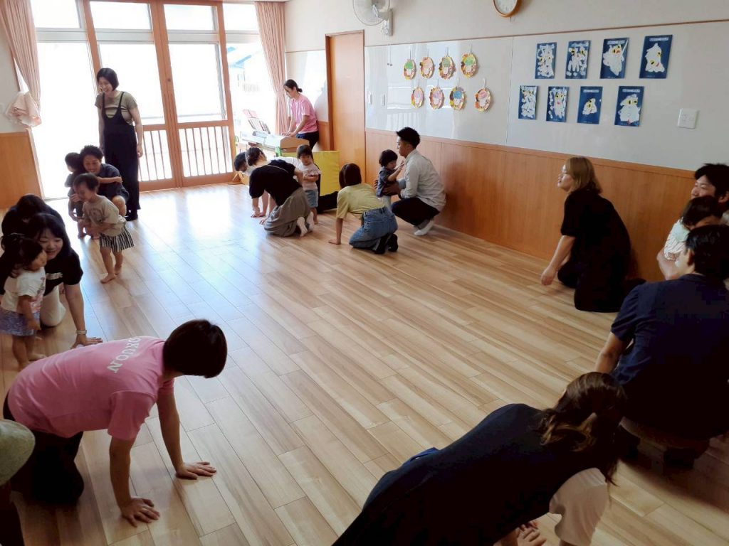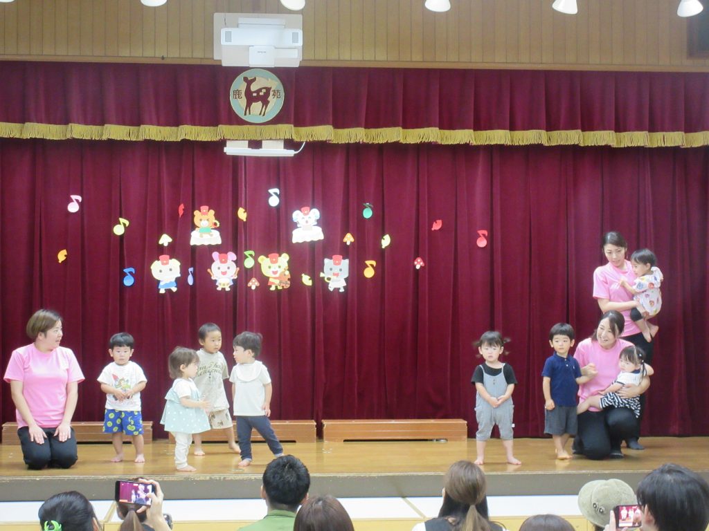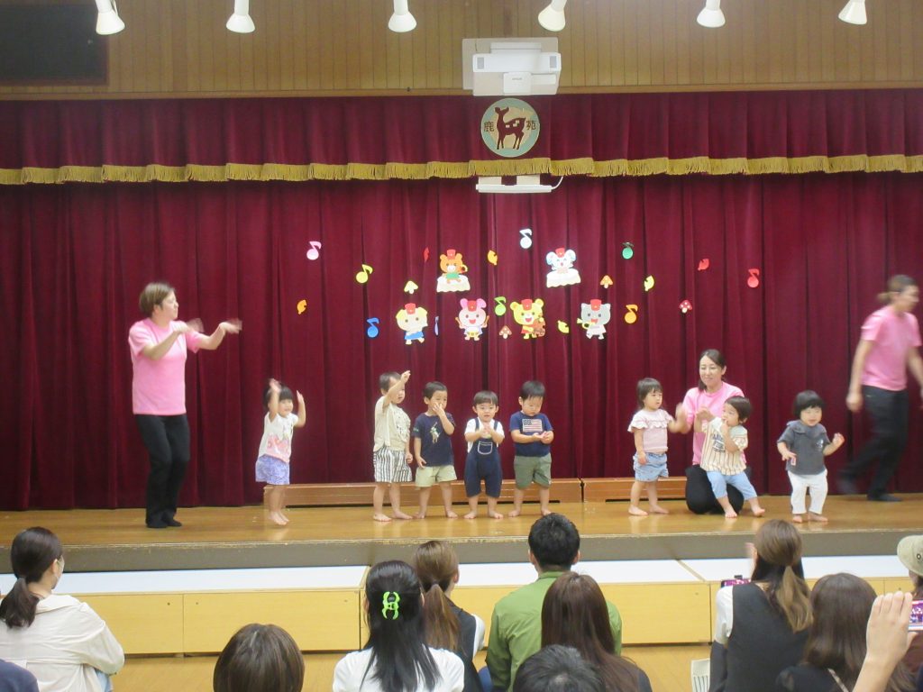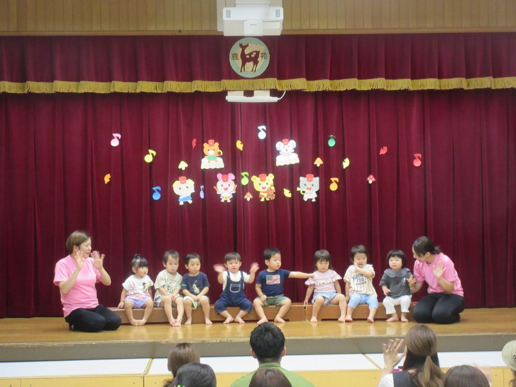 ミニミニ発表会では、たくさんのお家の方の前で、ちょっぴり泣いてしまうお子さんや、驚いた様子でかたまっているお子さん、普段通り手遊びや踊りを楽しむお子さん等、様々な姿が見られました。