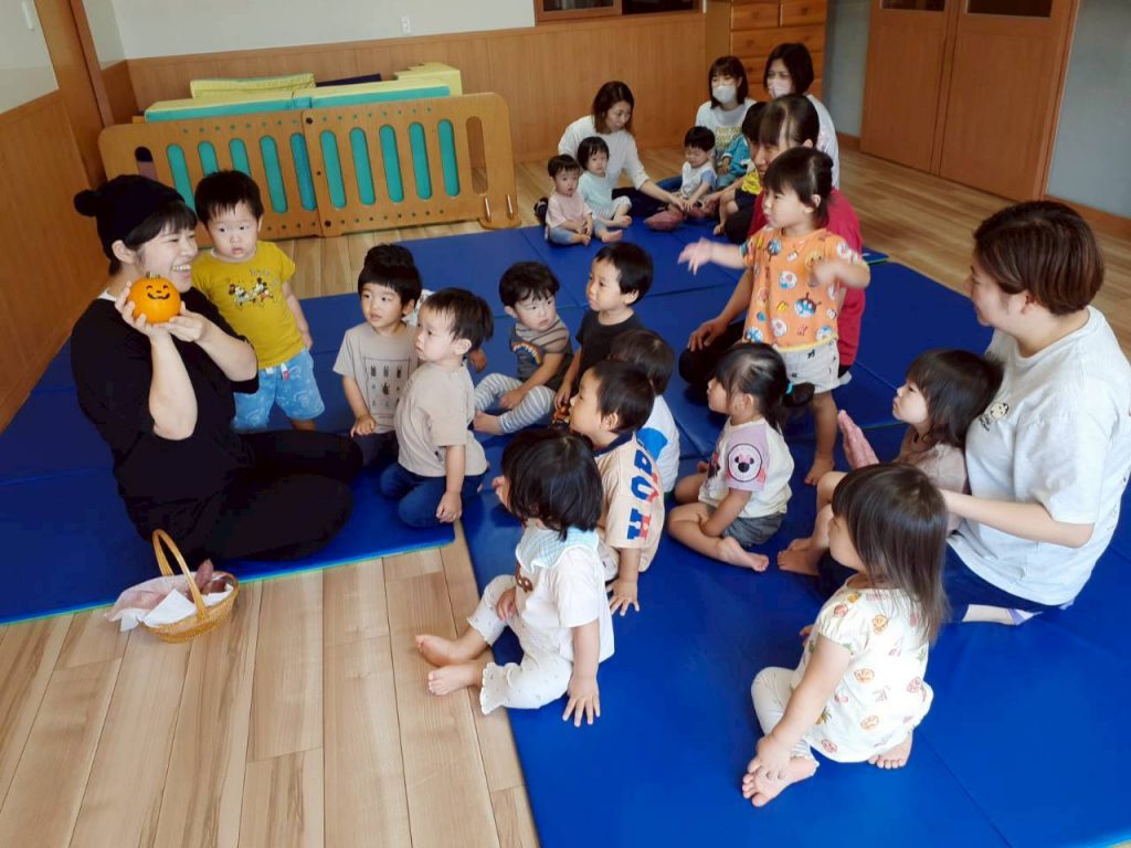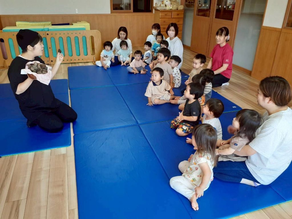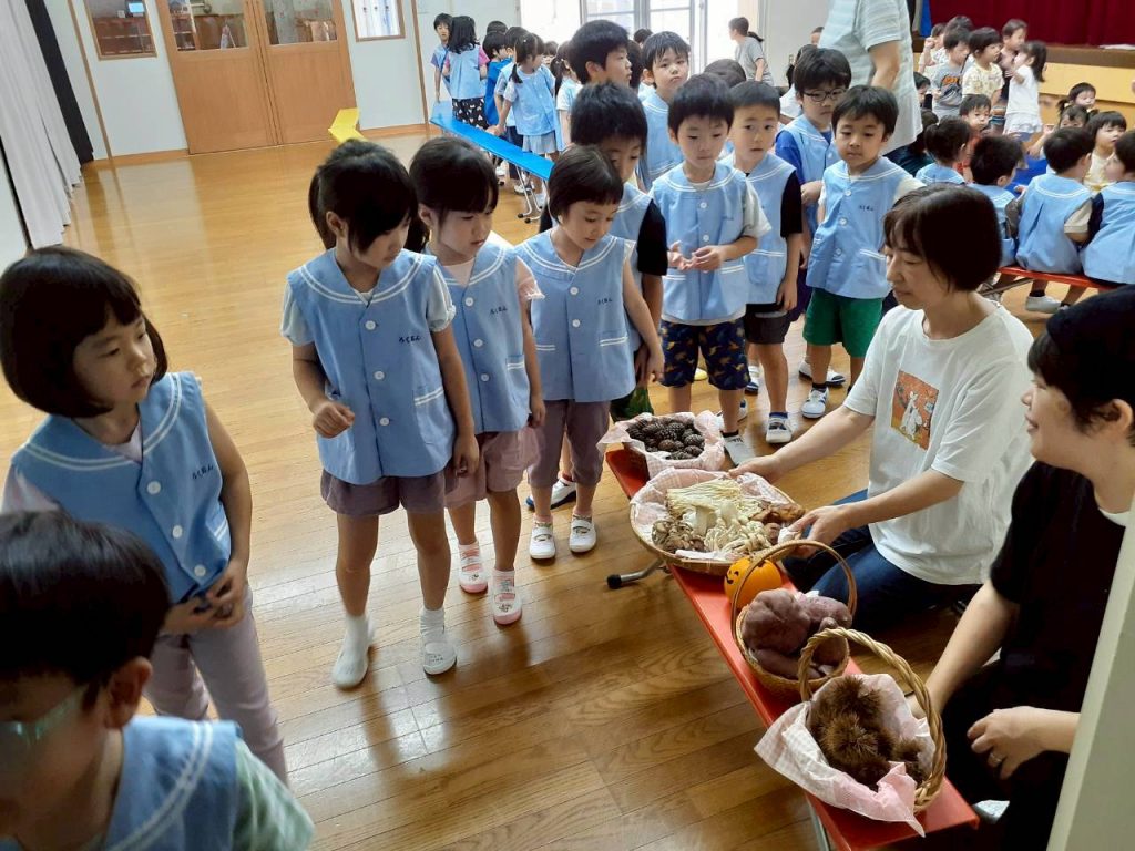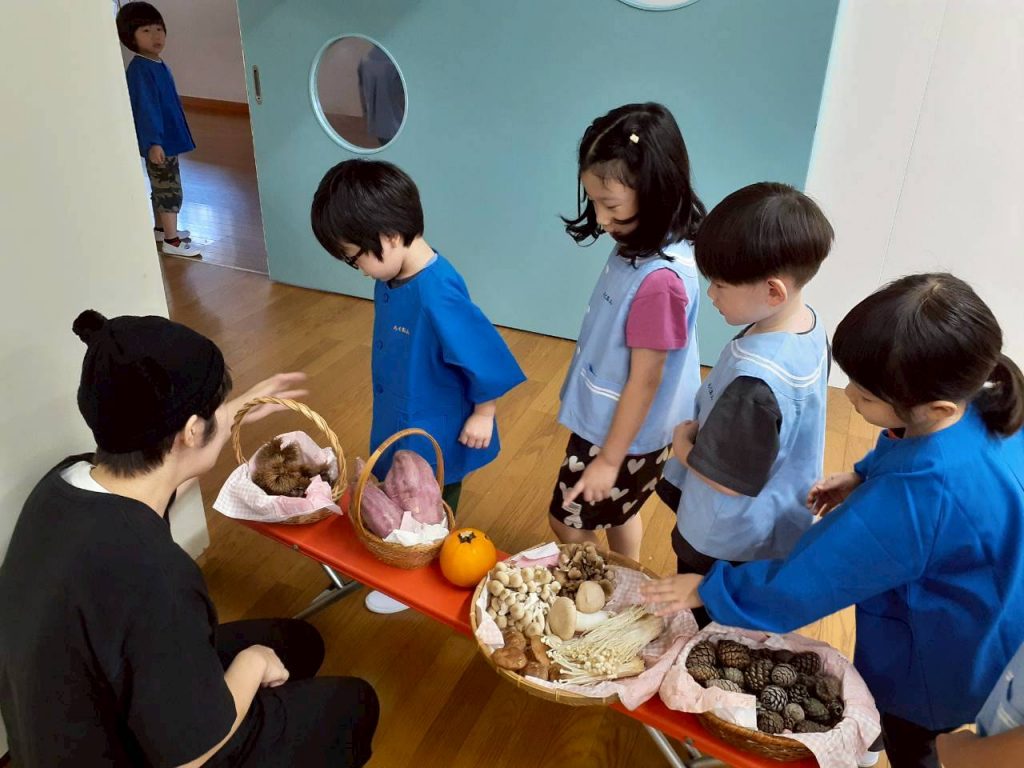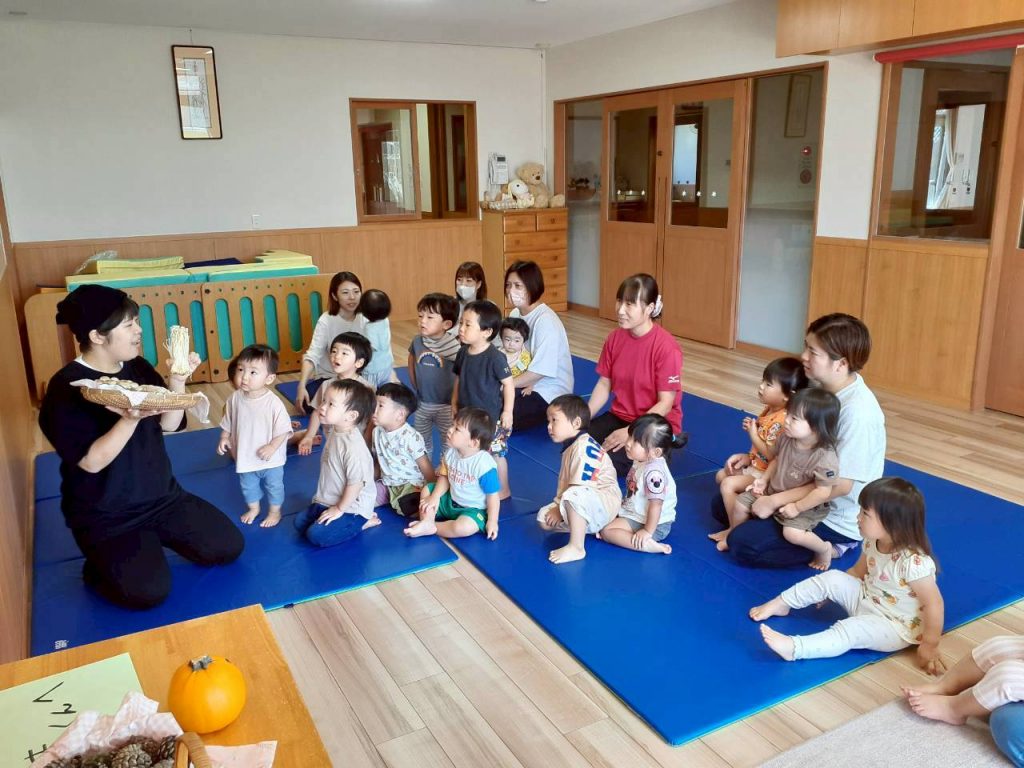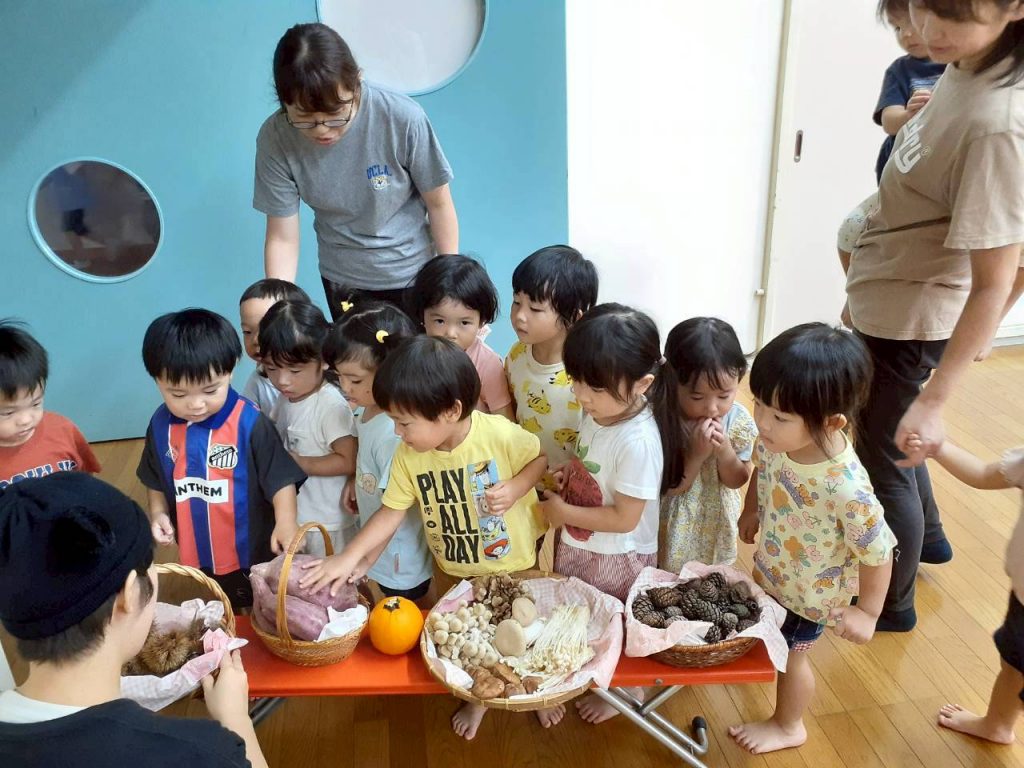 2025.10.06 10月のにこにこタイムを行いました 10月6日(月) 10月のにこにこタイムを行いました。 誕生児さんをお祝いした後は、クマさんと一緒に秋の物探しをしました。 【もも組・ばら組の様子】 【たんぽぽ組・さくら組・すみれ組・ひまわり組の様子】