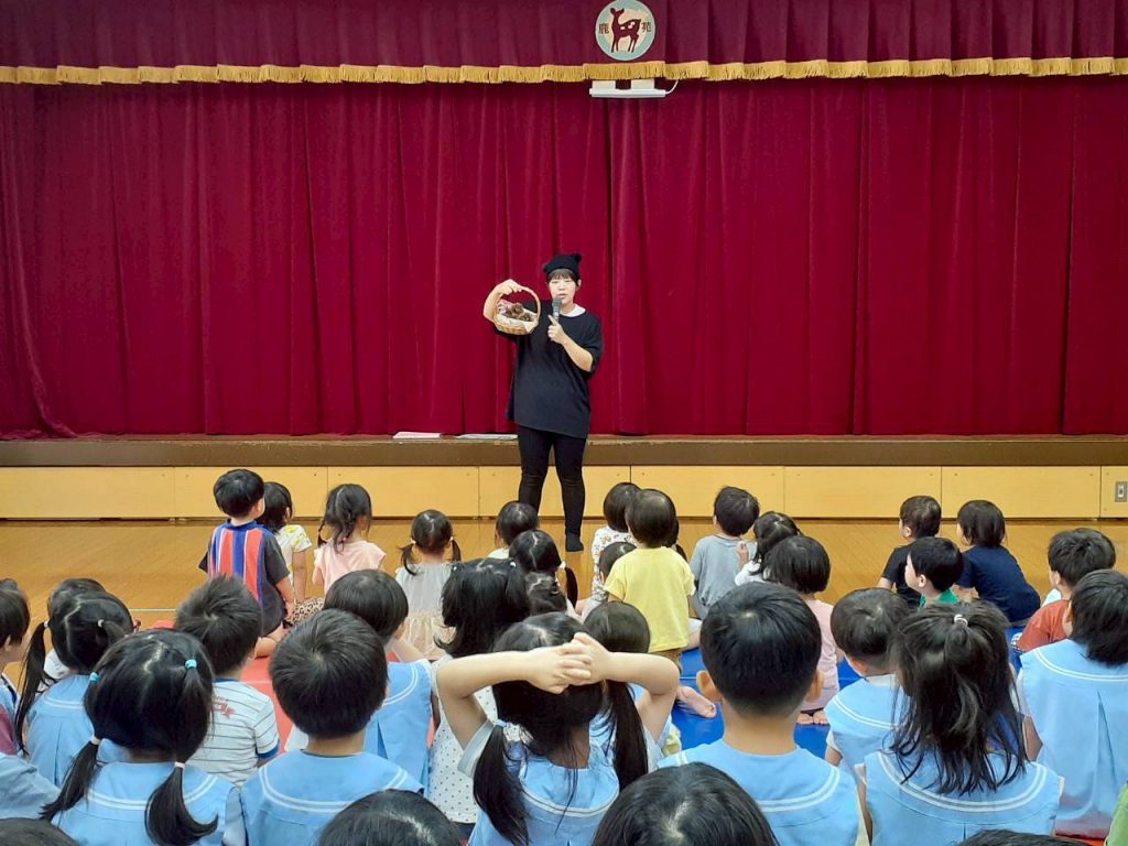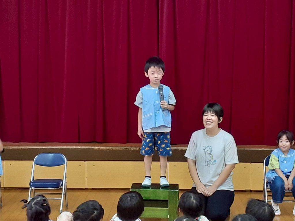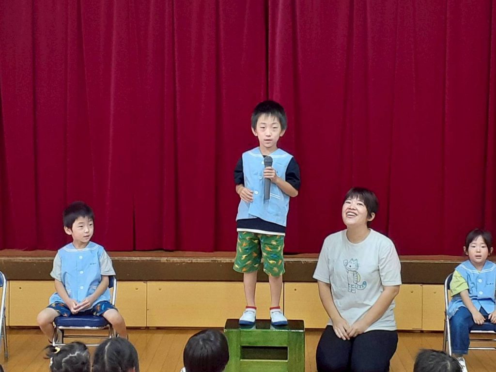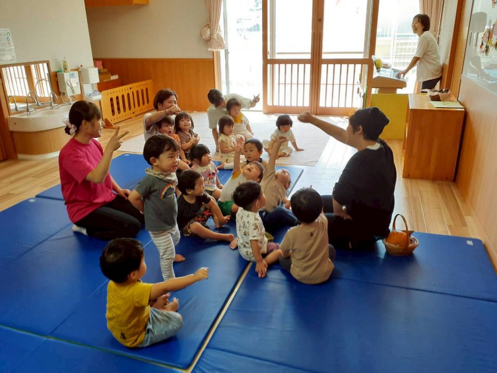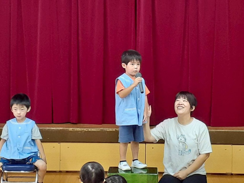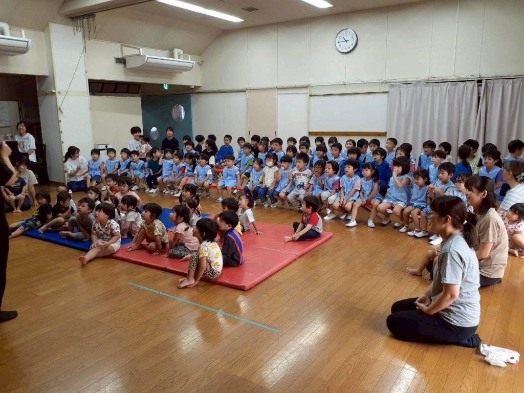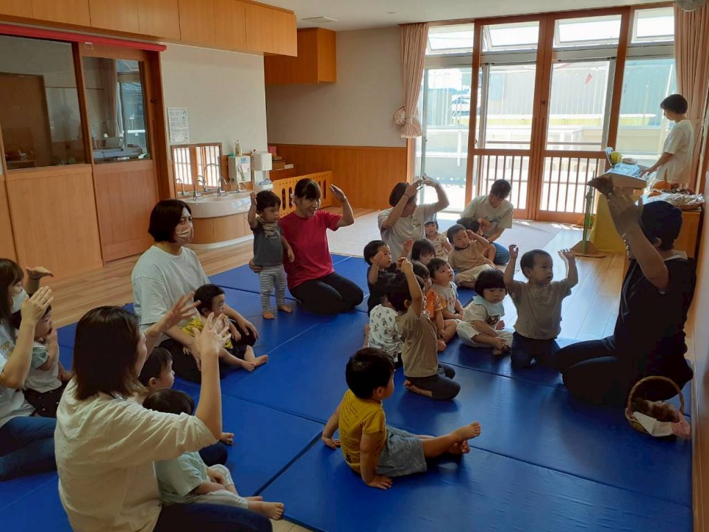 2025.10.06 10月のにこにこタイムを行いました 10月6日(月) 10月のにこにこタイムを行いました。 誕生児さんをお祝いした後は、クマさんと一緒に秋の物探しをしました。 【もも組・ばら組の様子】 【たんぽぽ組・さくら組・すみれ組・ひまわり組の様子】