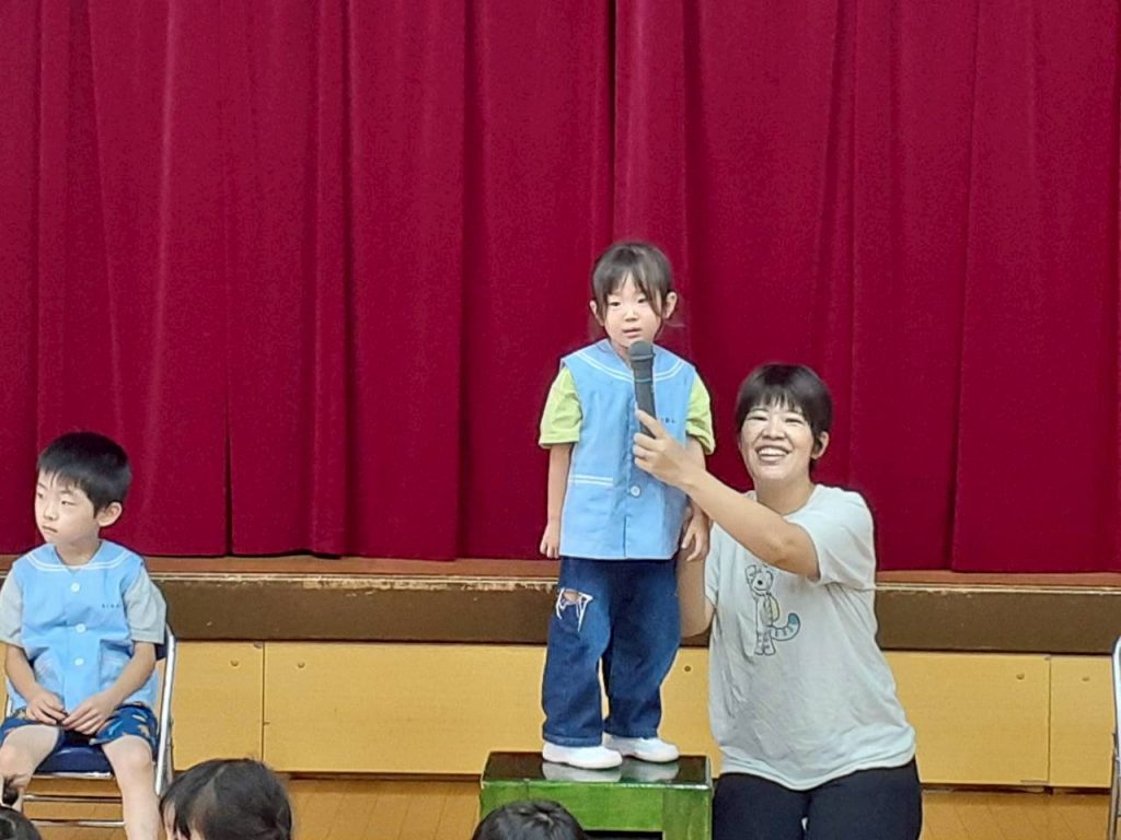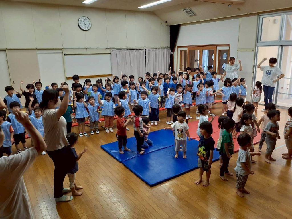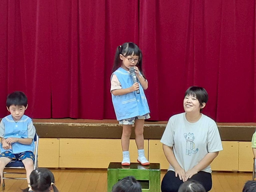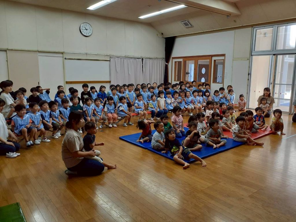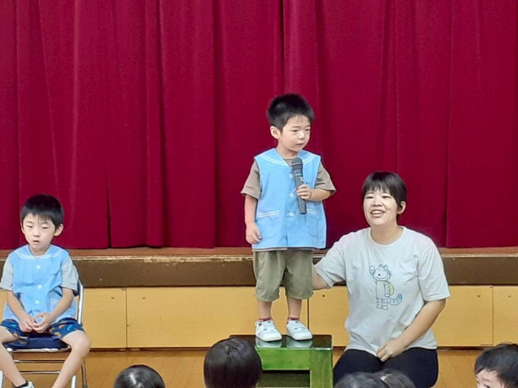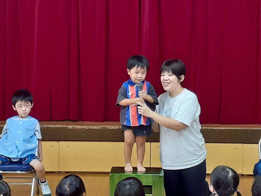 2025.10.06 10月のにこにこタイムを行いました 10月6日(月) 10月のにこにこタイムを行いました。 誕生児さんをお祝いした後は、クマさんと一緒に秋の物探しをしました。 【もも組・ばら組の様子】 【たんぽぽ組・さくら組・すみれ組・ひまわり組の様子】