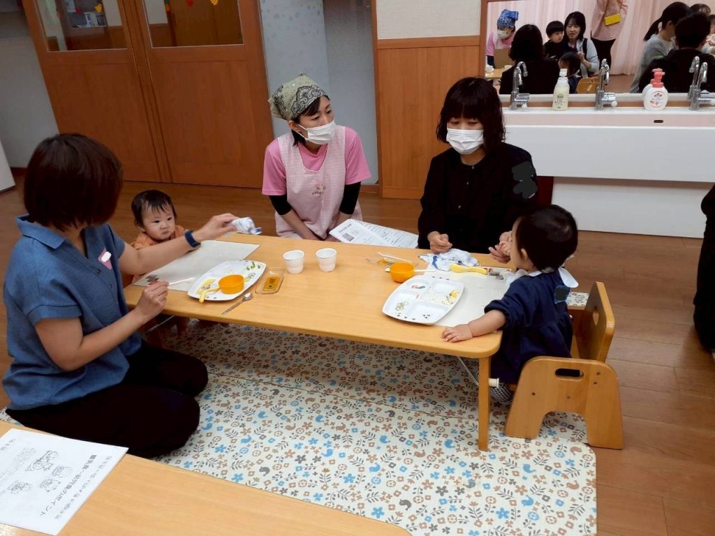 離乳食段階ごとや幼児食の形態や味付けなどを試食していただいた事で、「うちの味付けは濃かったので、薄味に変えてみようと思います。」