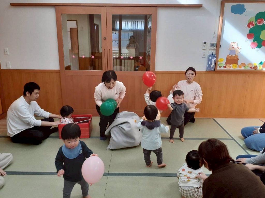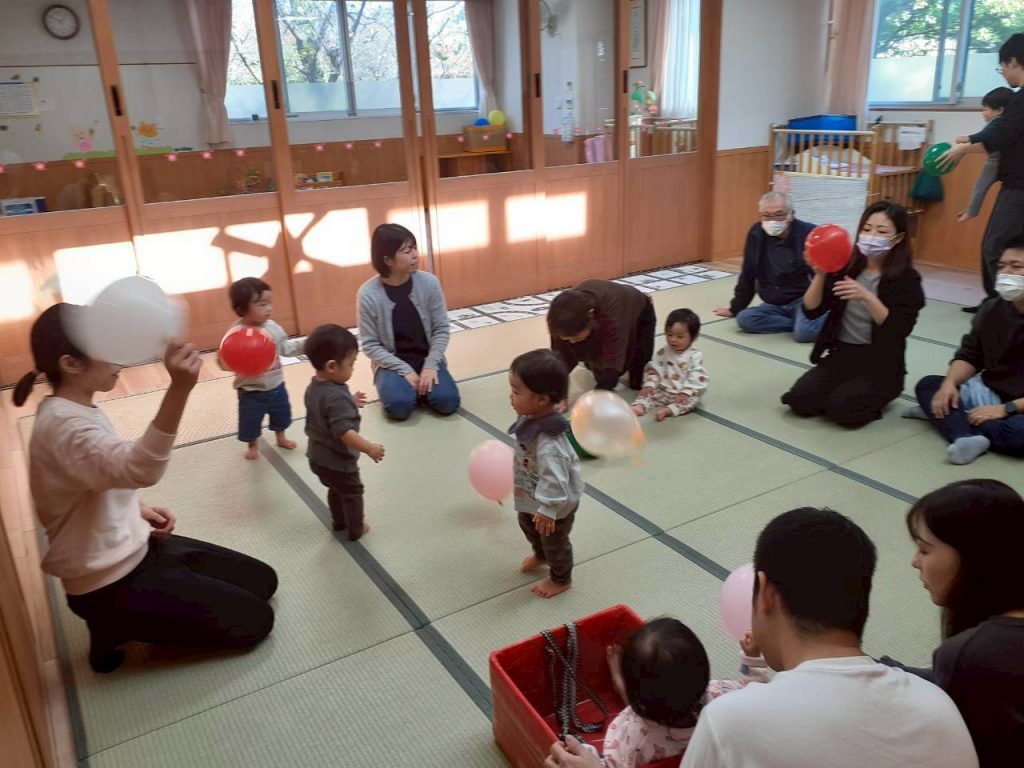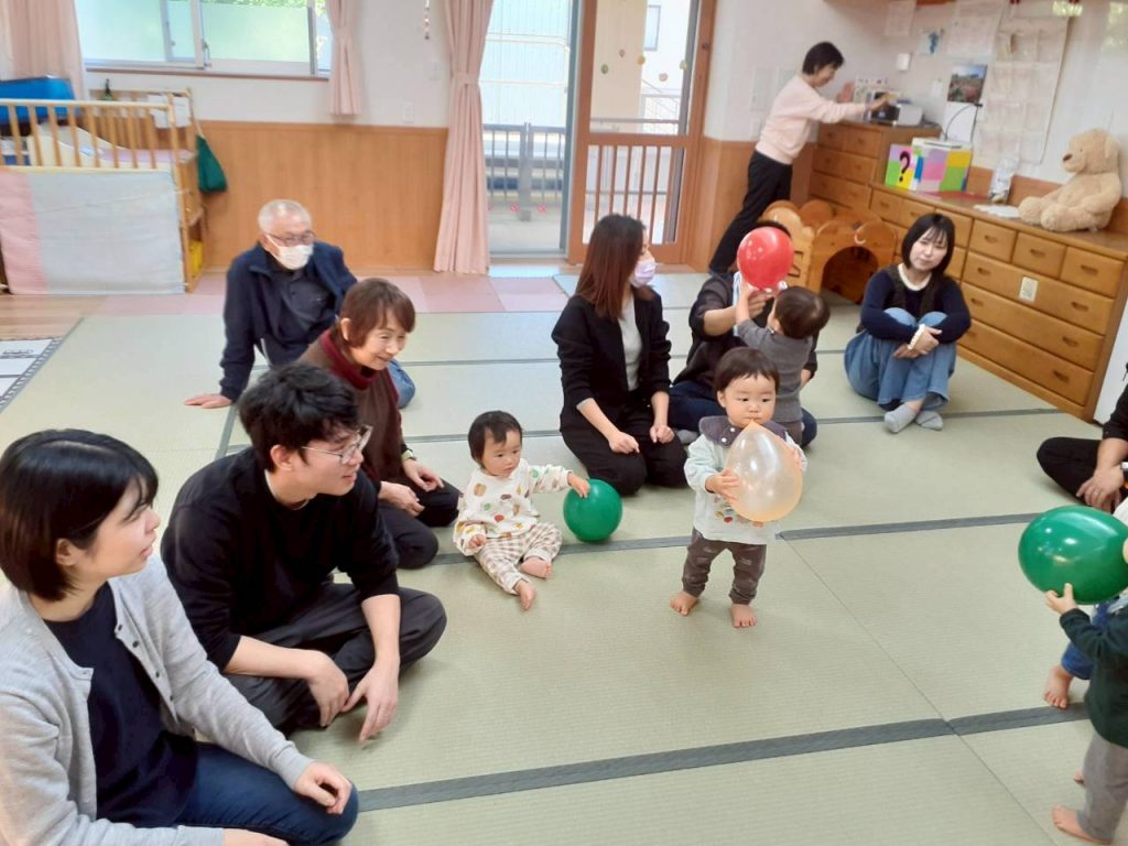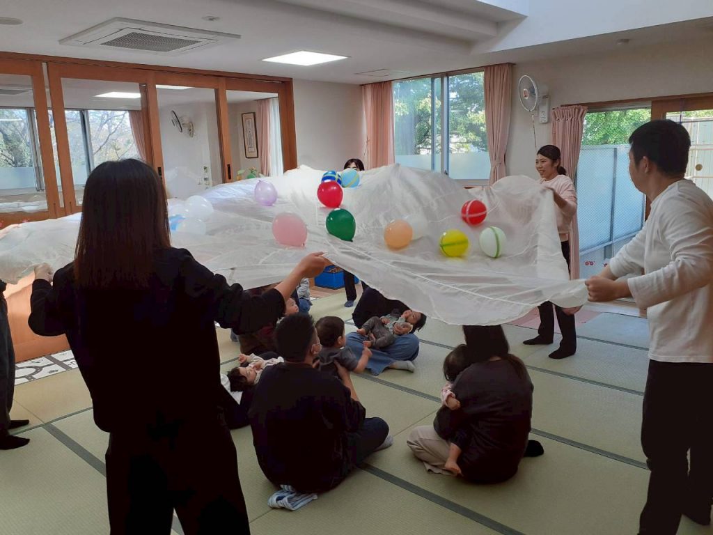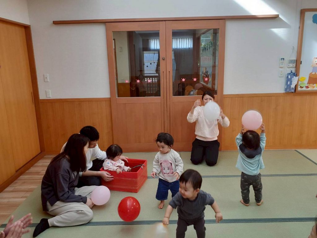 2025.11.01 【もも組】すこやか参観を行いました 11月1日(土) もも組のすこやか参観を行いました。 お家の方との触れ合い遊びや風船を使った遊びを十分に楽しみました。 本日はお忙しい中ご参加いただき、ありがとうございました。