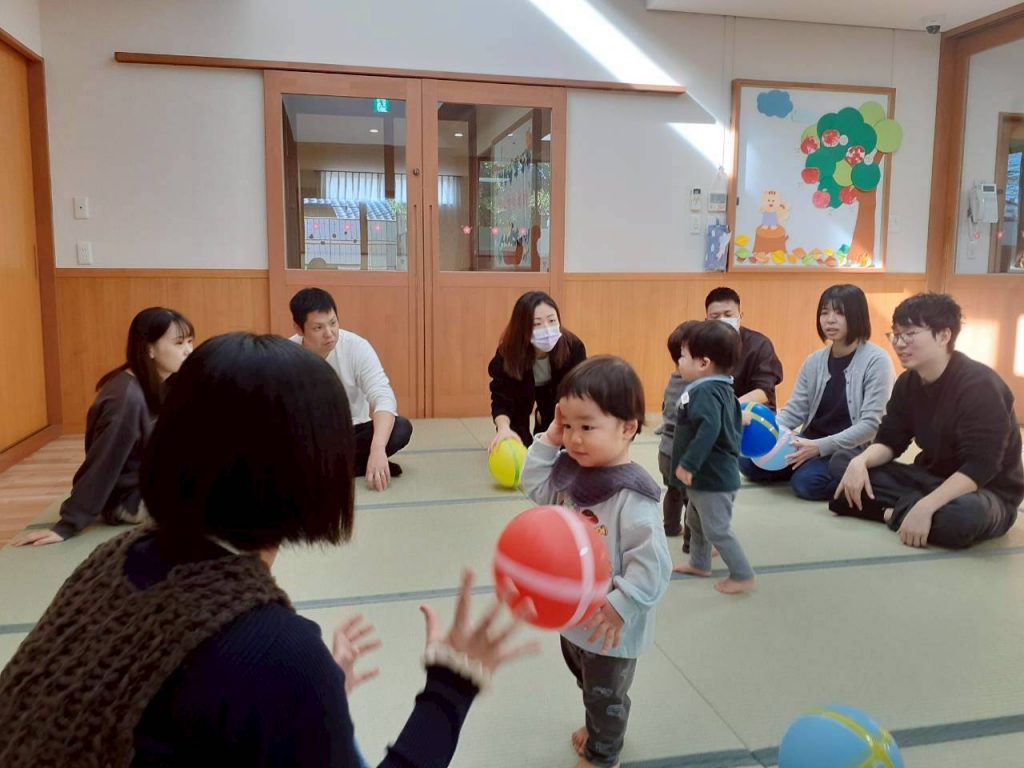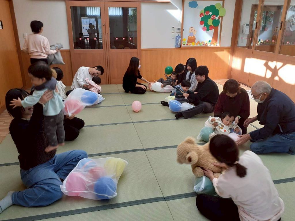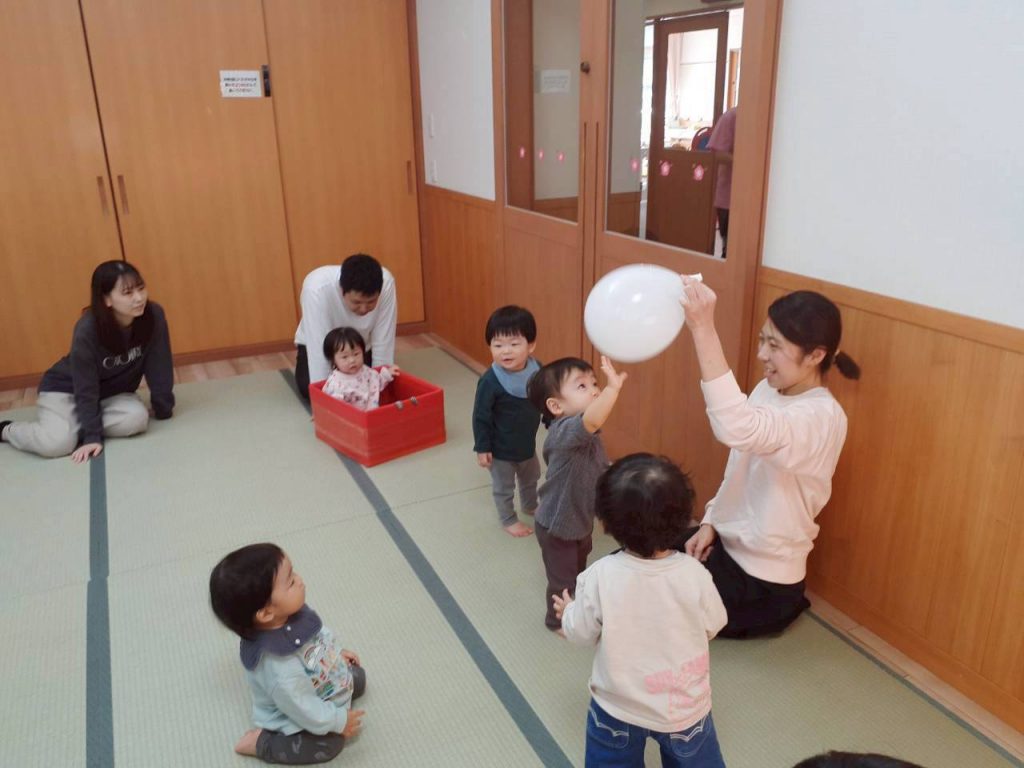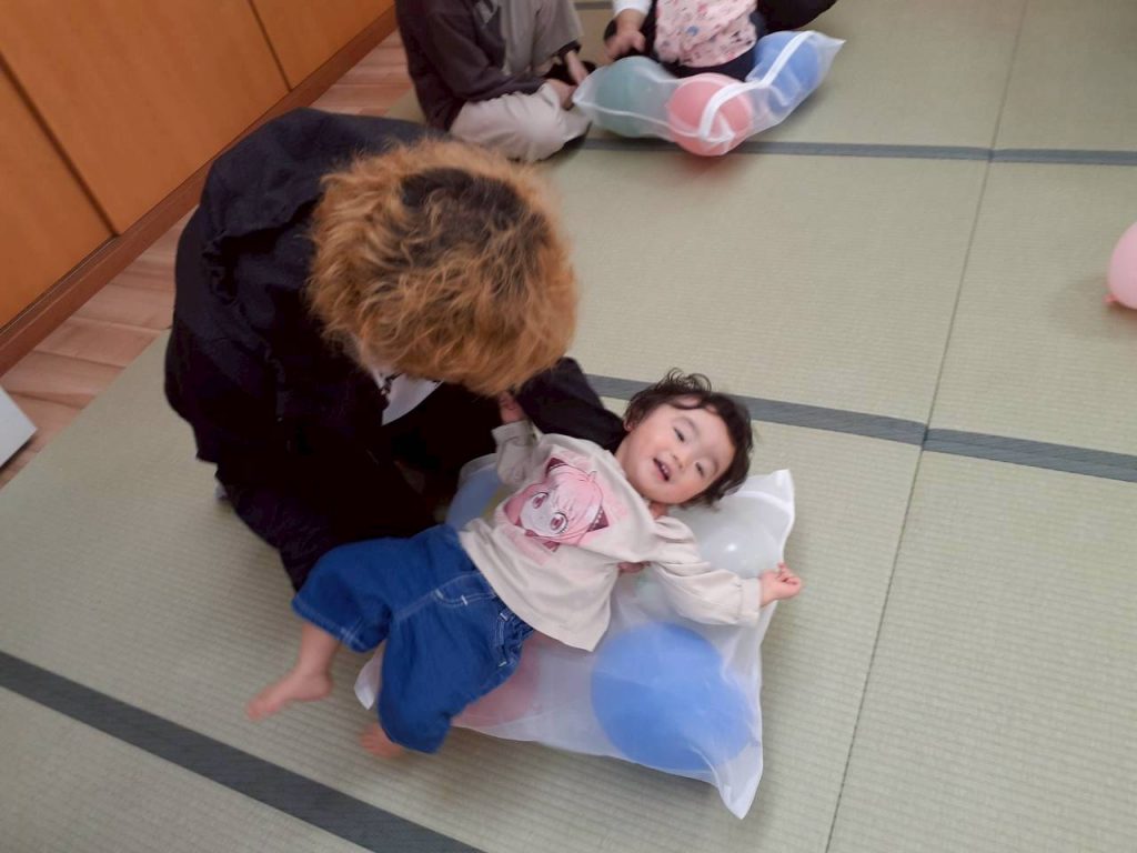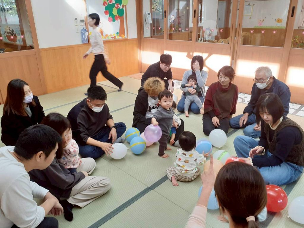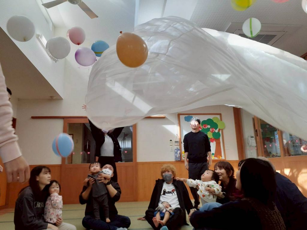 2025.11.01 【もも組】すこやか参観を行いました 11月1日(土) もも組のすこやか参観を行いました。 お家の方との触れ合い遊びや風船を使った遊びを十分に楽しみました。 本日はお忙しい中ご参加いただき、ありがとうございました。