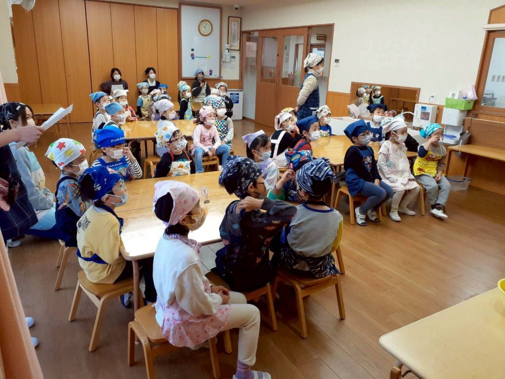 真剣な表情で、キッチンの先生からの作り方の説明を聞いていた子ども達。