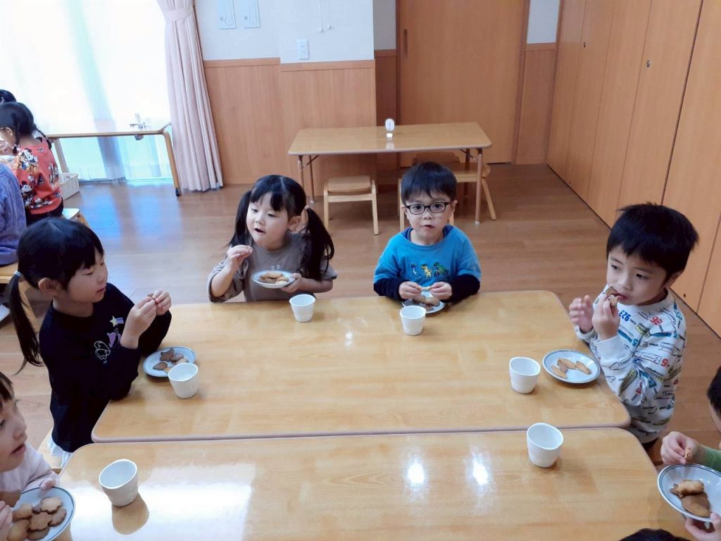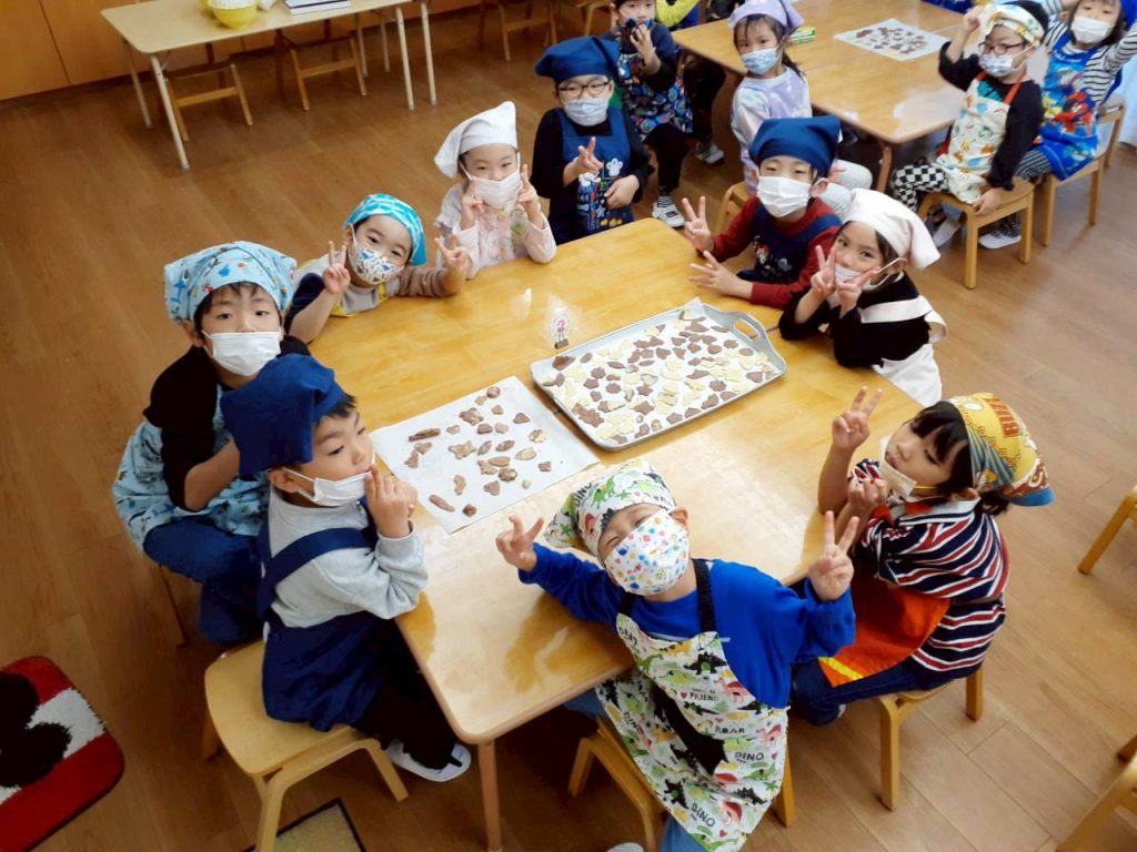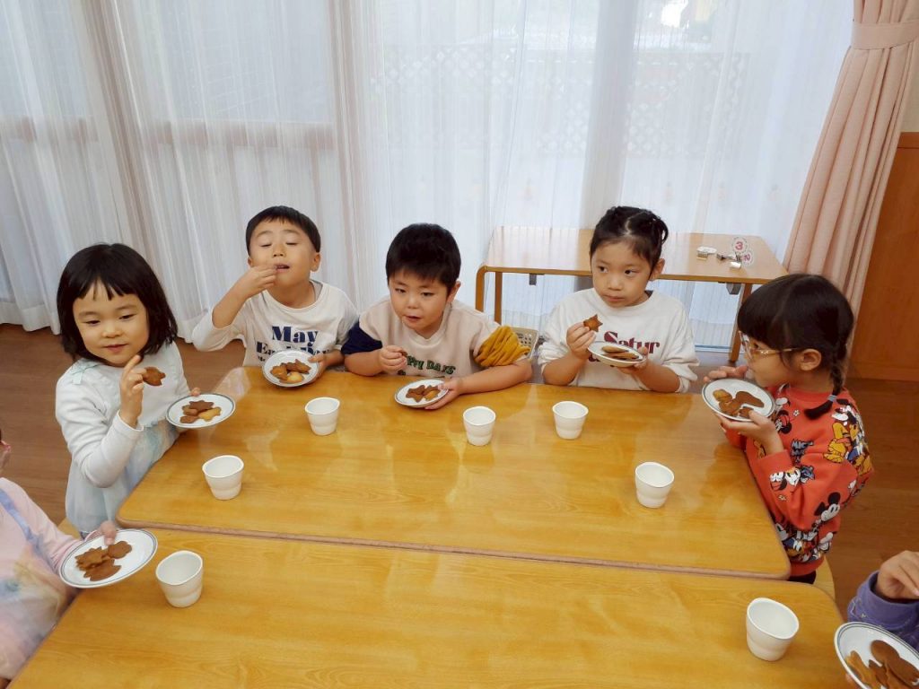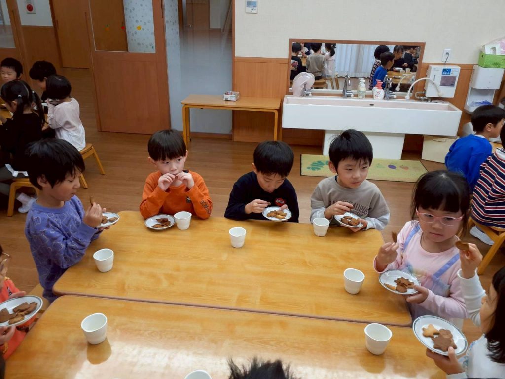 午後の活動中も、キッチンの方からクッキーの焼けるいい匂いが漂ってきて、「クッキーやけたかな?」と期待を膨らませていた子ども達。