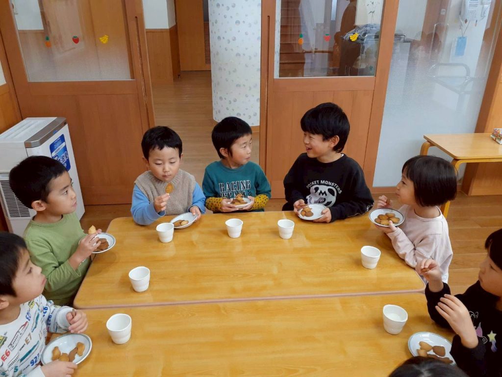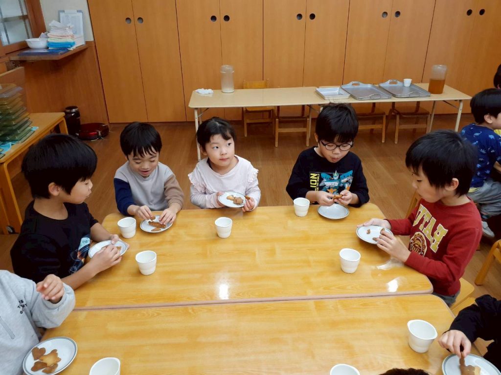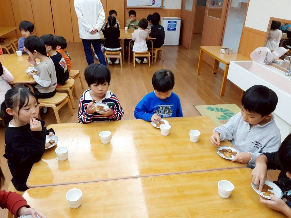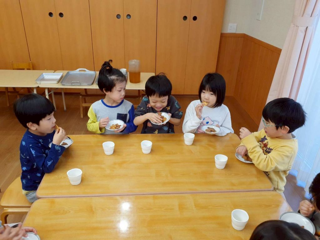 午後の活動中も、キッチンの方からクッキーの焼けるいい匂いが漂ってきて、「クッキーやけたかな?」と期待を膨らませていた子ども達。