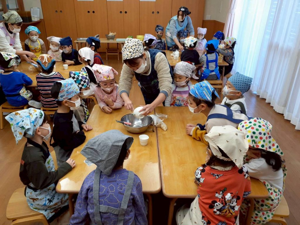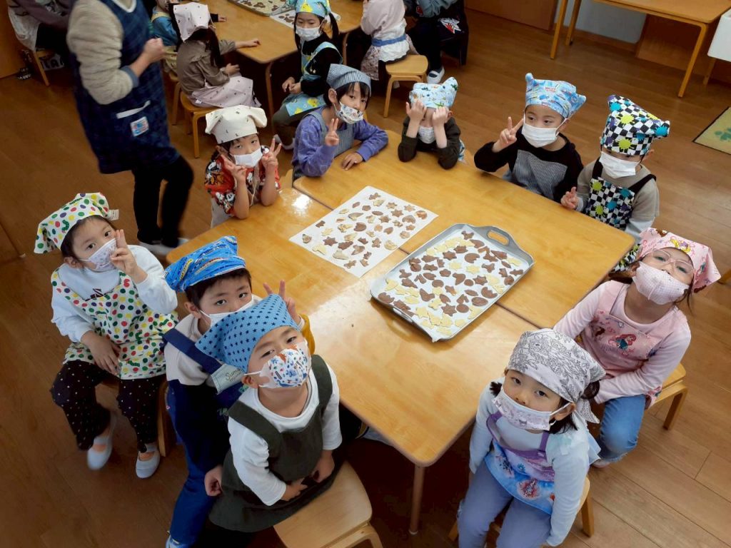 11月14日(金) すみれ組とひまわり組合同で、クッキー作りを楽しみました。