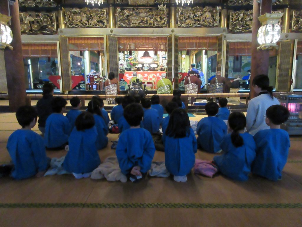 園内でお話を聞いた後、ひまわり組さんは、ご本山専照寺の報恩講にも参加させていただきました。
