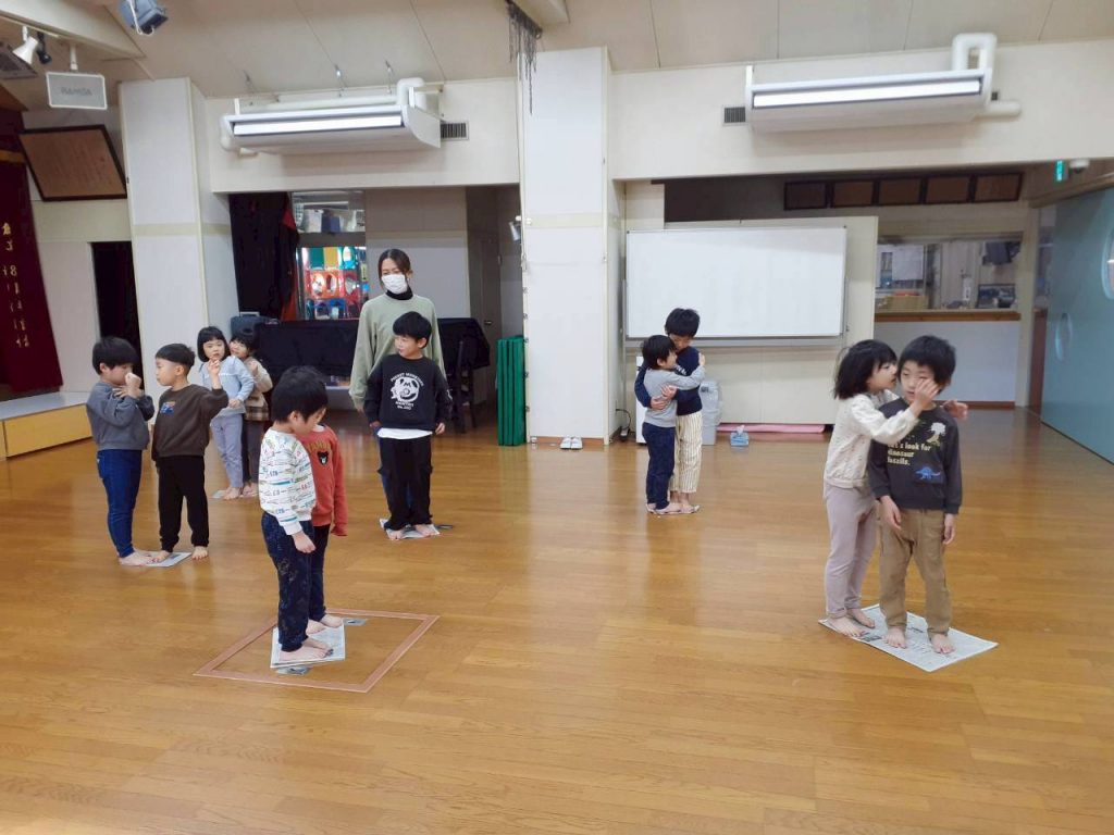 今回は、主に【社会性】をねらいとしたムーブメントでした。友達と相談、協力したり、自分なりの意見を発信したりと、年長さんらしい育ちが見られる時間となりました。