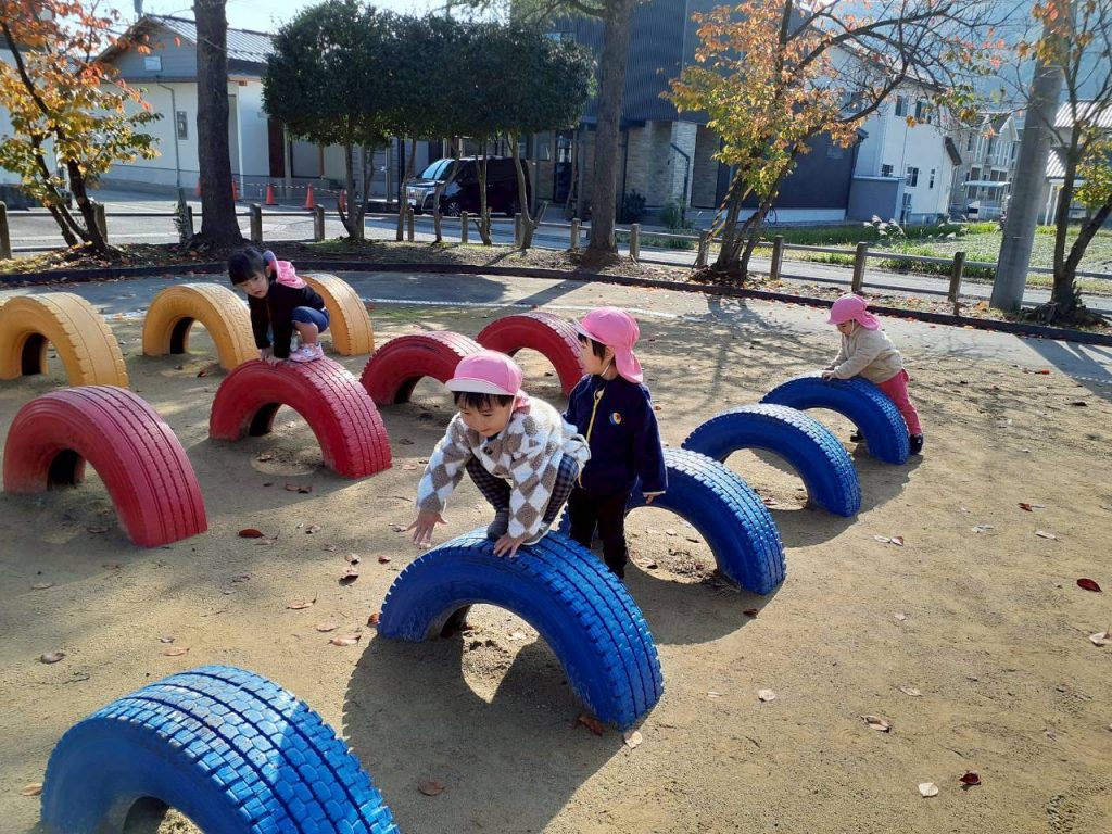天気のいい日は、戸外で元気いっぱい遊びました。