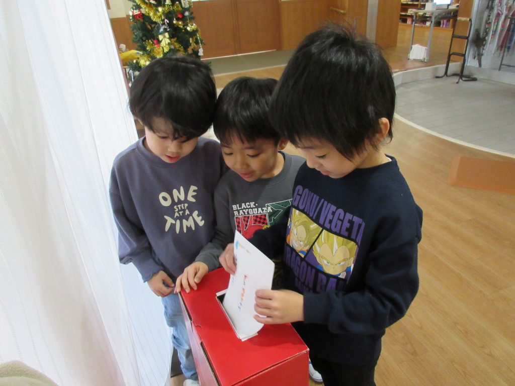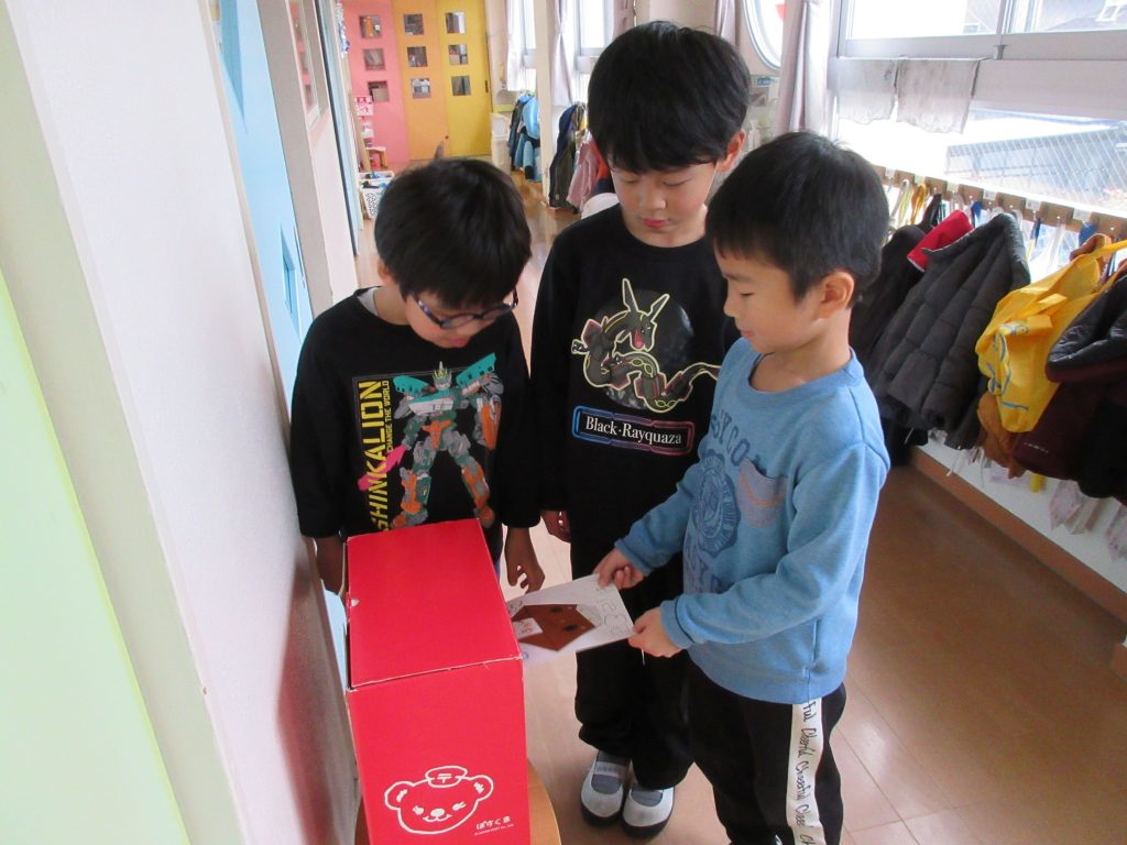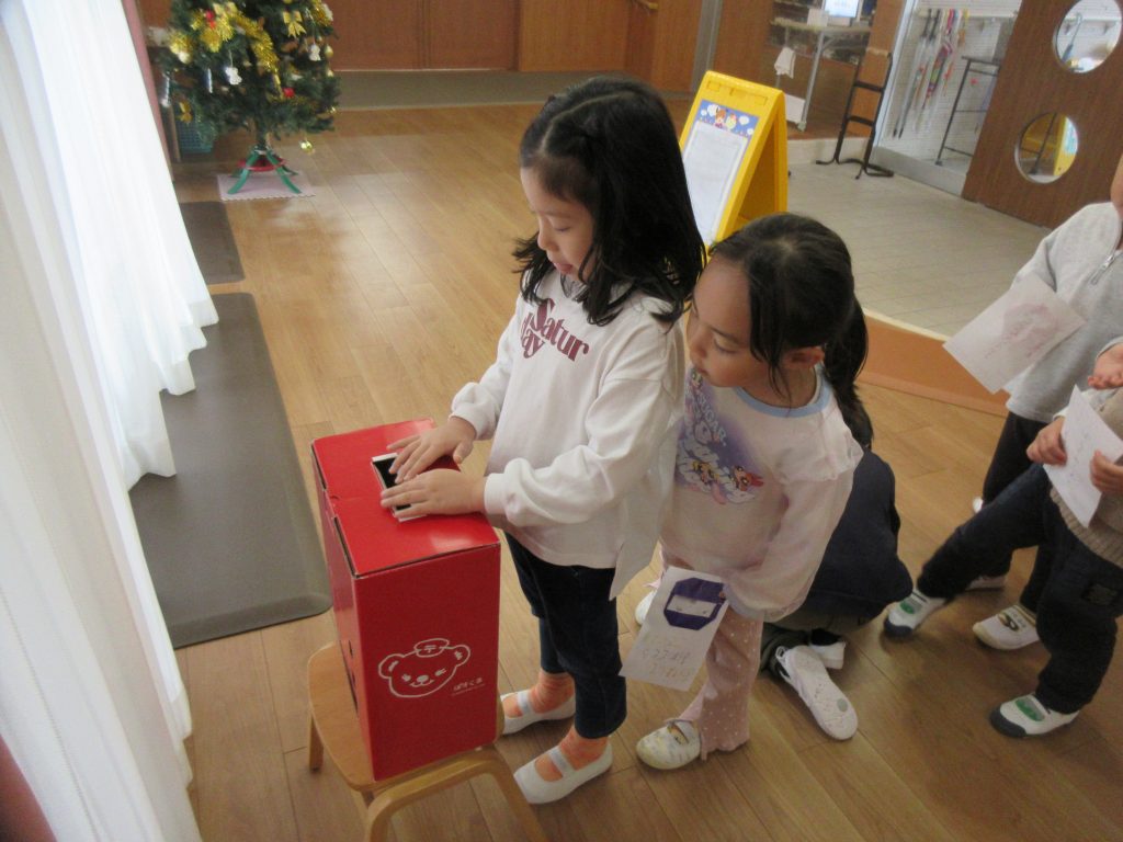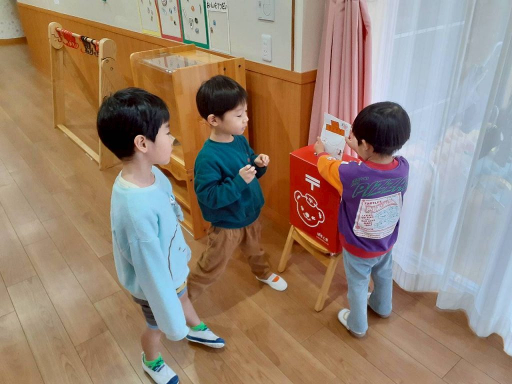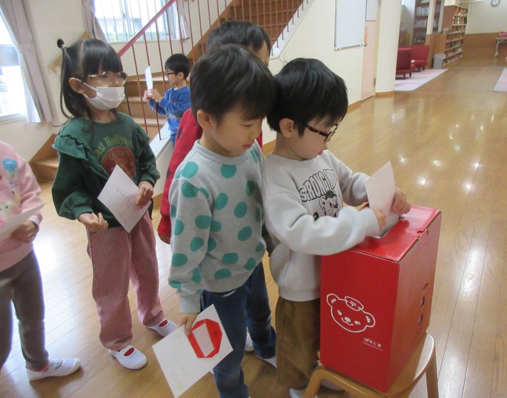 自分達で作った年賀状を、園内に置いてあるポストに投函しました。