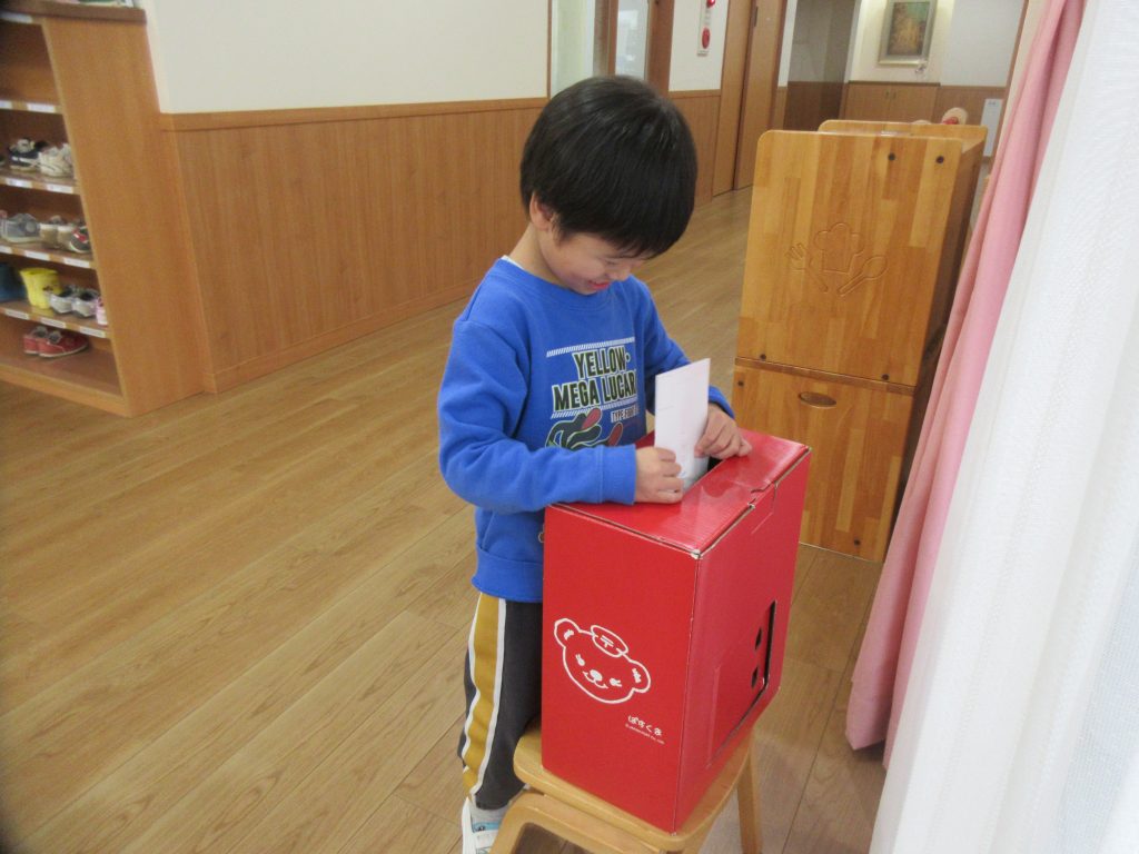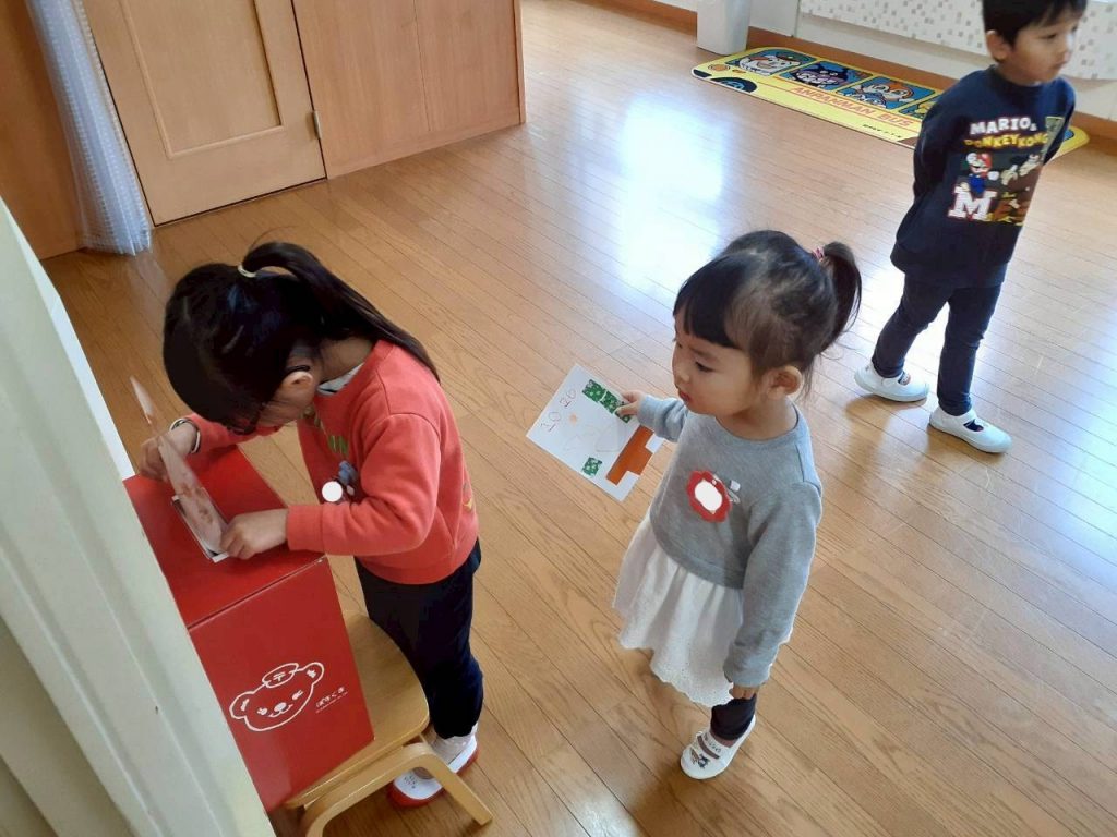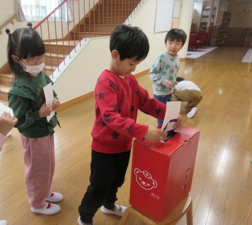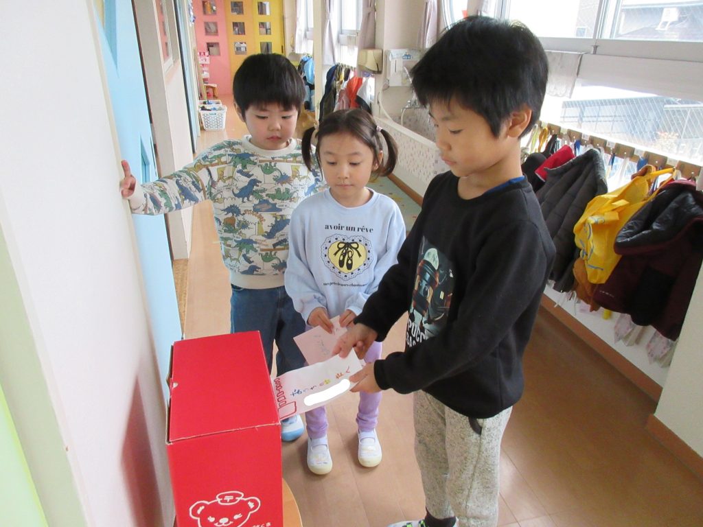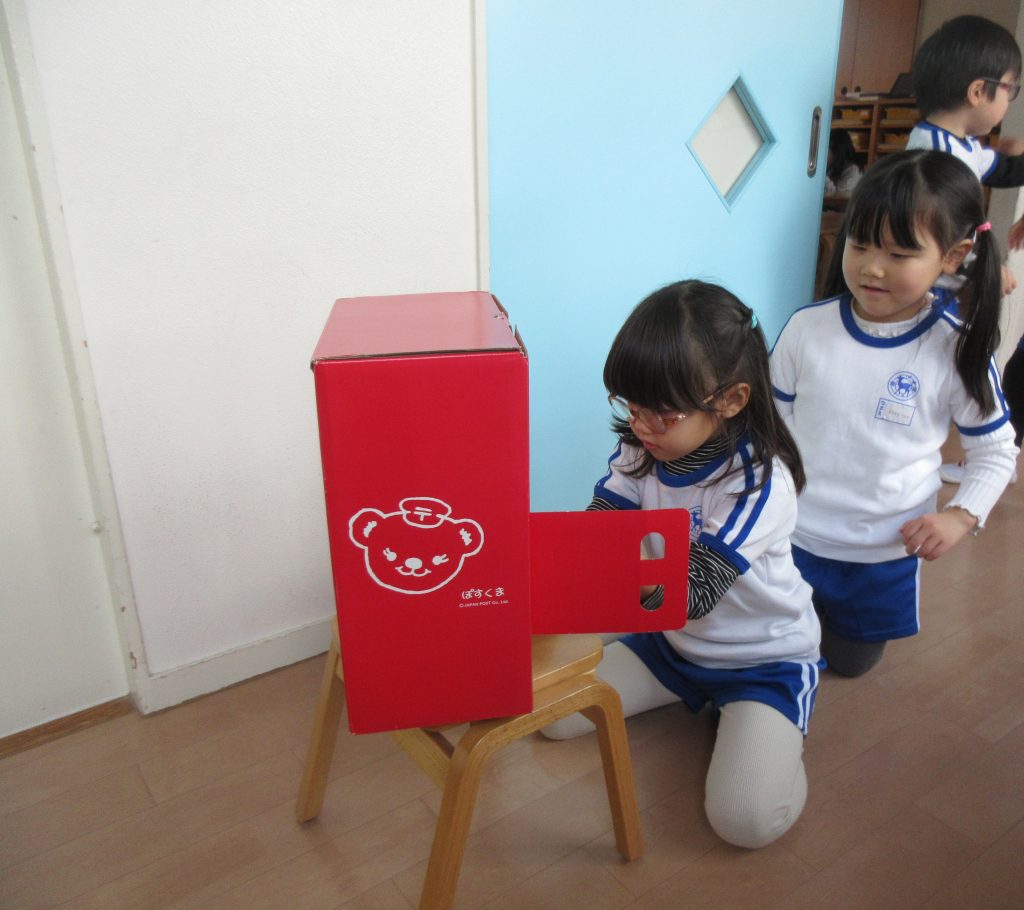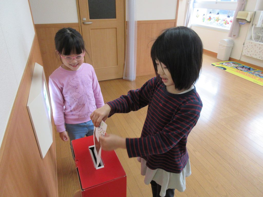 自分達で作った年賀状を、園内に置いてあるポストに投函しました。