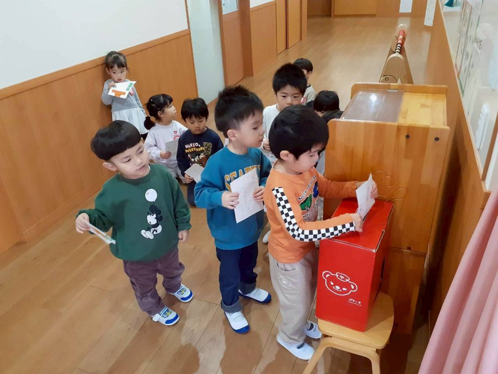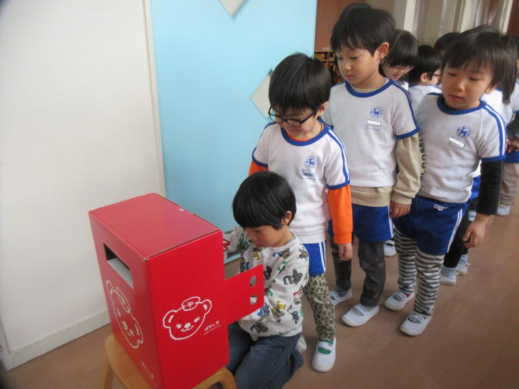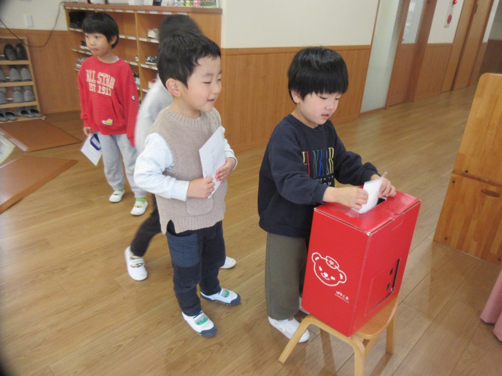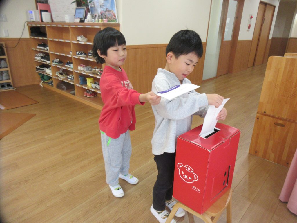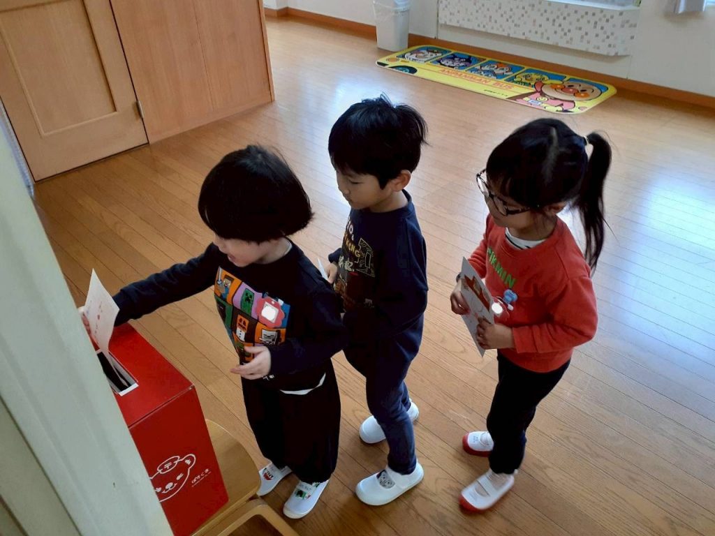 自分達で作った年賀状を、園内に置いてあるポストに投函しました。