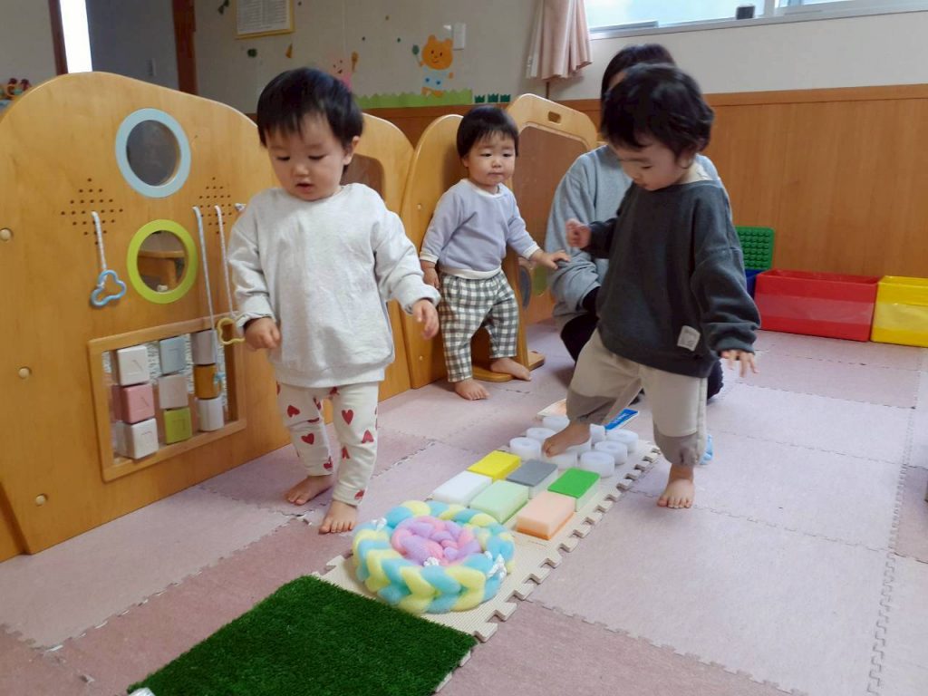 2026.02.02 【もも組】活動の様子です 1月の活動の様子です。 お友達が遊んでいると真似をして一緒に楽しみ、顔を見合わせて笑い合う事が多くなってきました。 好きな遊びはとても集中して、繰り返し何度も楽しむ姿も見られました。