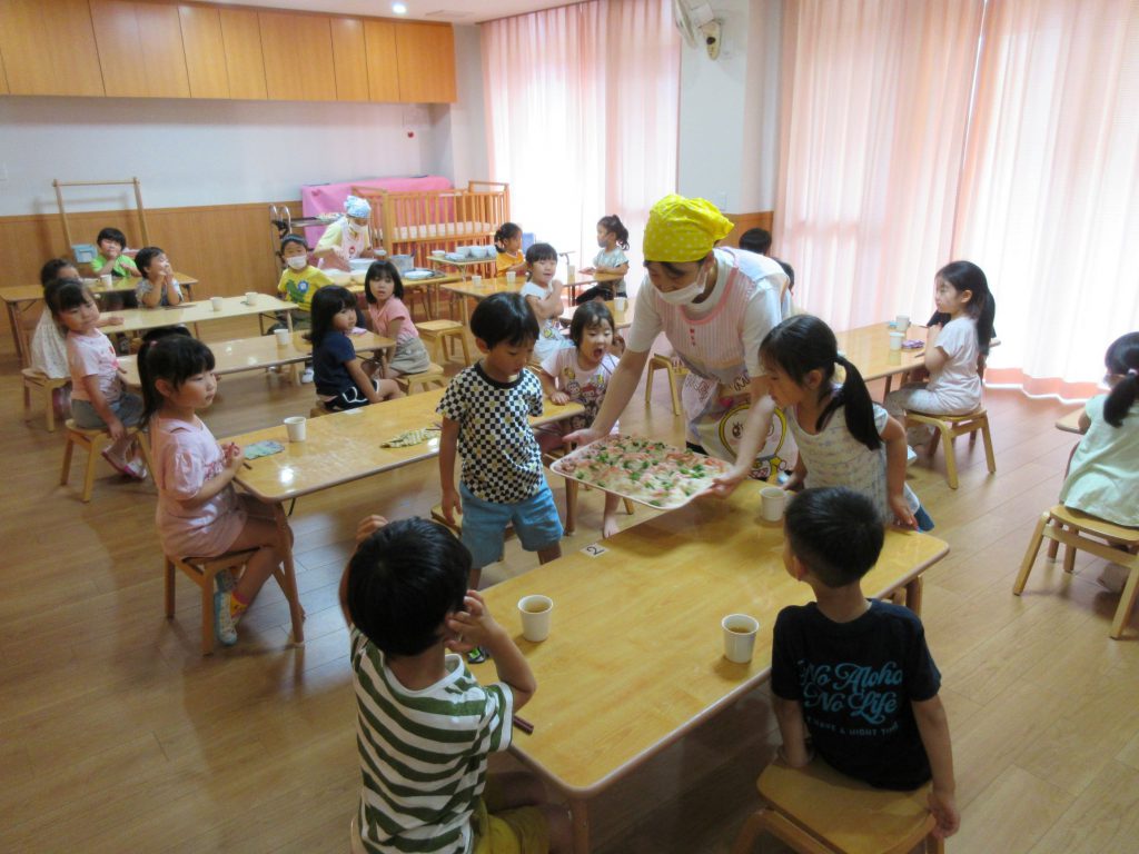 今日は七夕にちなんだ『七夕メニュー』。夏ならではの“そうめん”に子ども達はとても大喜びでした。