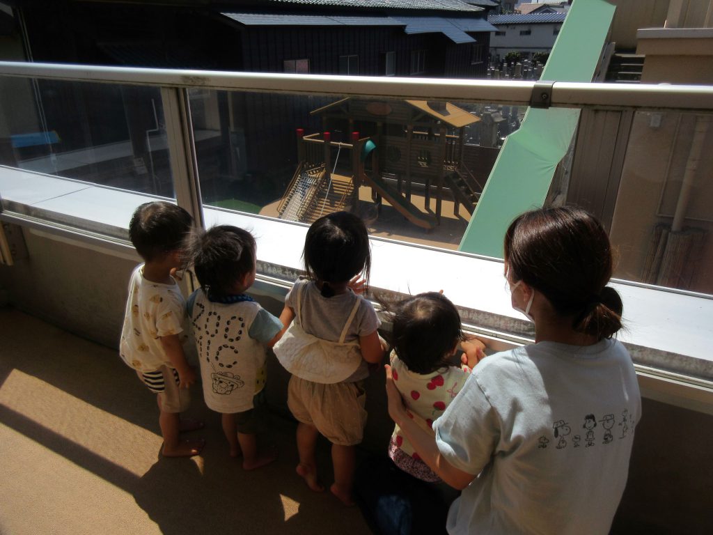 「えんてい、いきたい!」「はやくあそびたいね」と本格的に遊べるのを楽しみにしている子ども達。