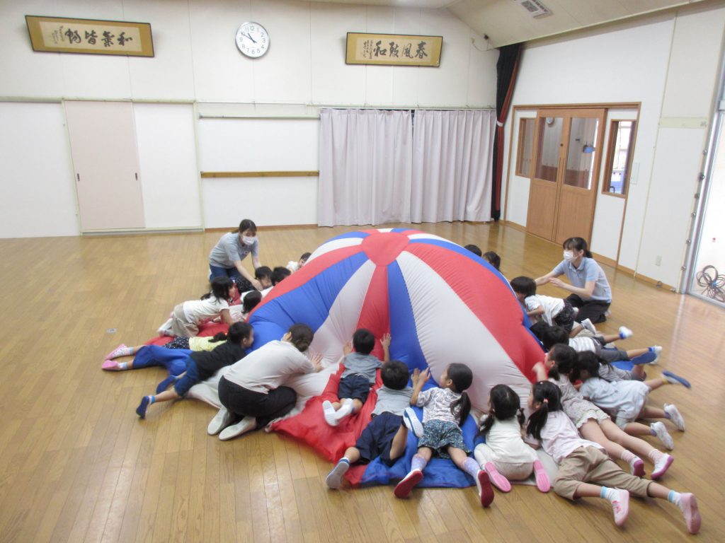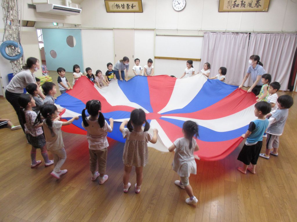 夏ならではの水遊びが終わり、製作や戸外遊び、ムーブメント遊具を使った遊びを楽しんでいます。