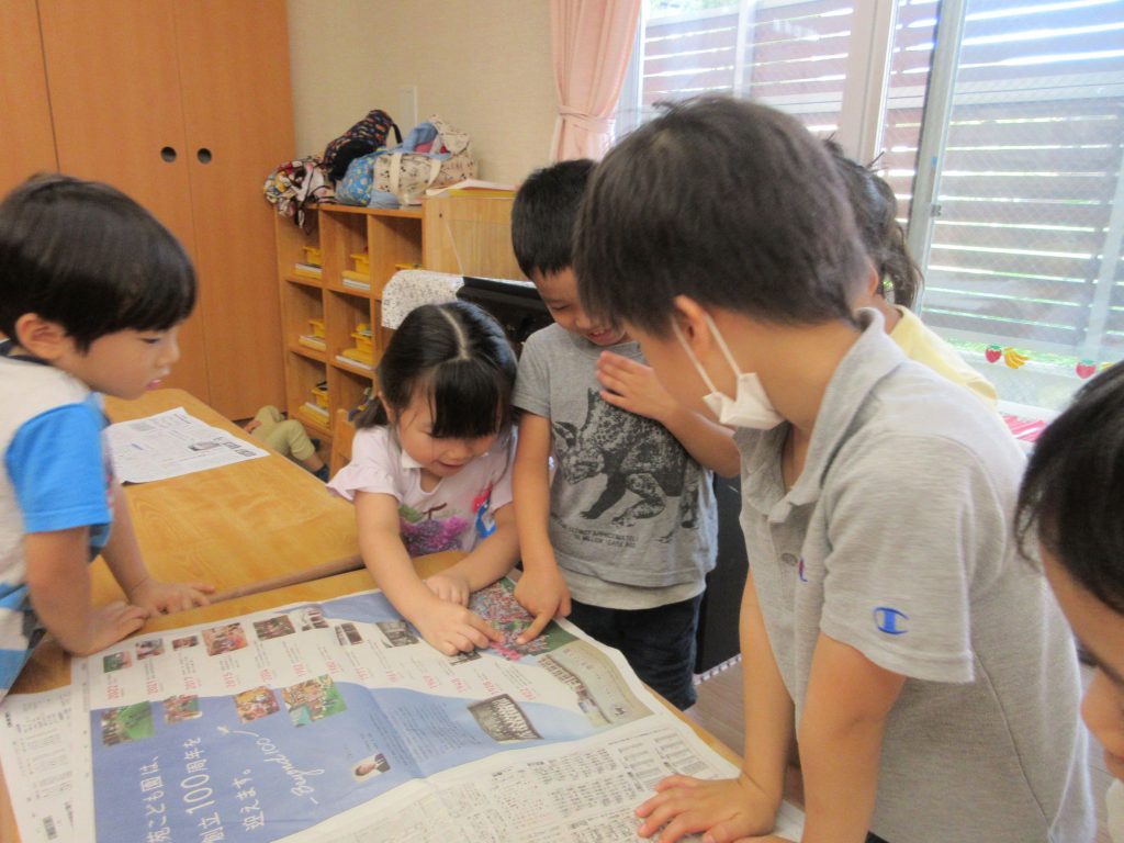 鹿苑こども園100周年の新聞広告をみんなで見ました