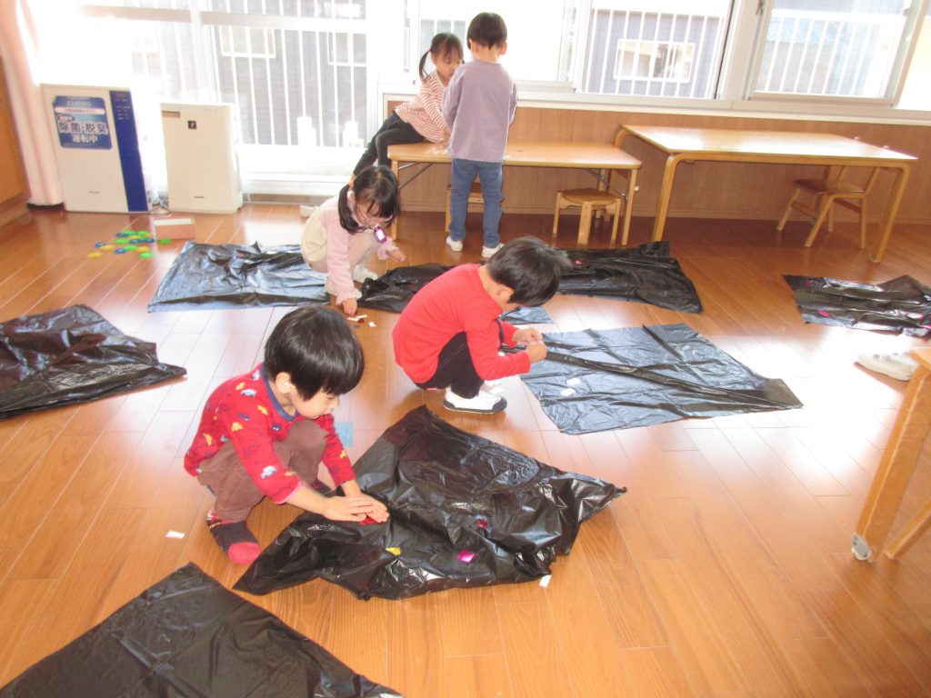 ハロウィンごっこに向けてのお面とマントの製作、当日のハロウィンごっこととても楽しく満足した様子の子ども達でした。