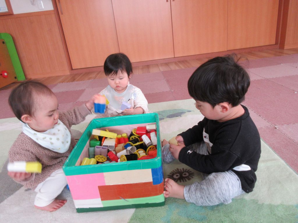 新しいお部屋で、今までなかったおもちゃを使って遊んだり、食事や午睡をして過ごしていた子ども達の様子を紹介します。
