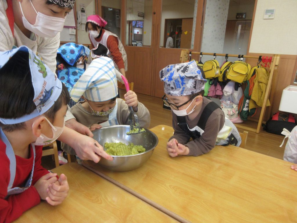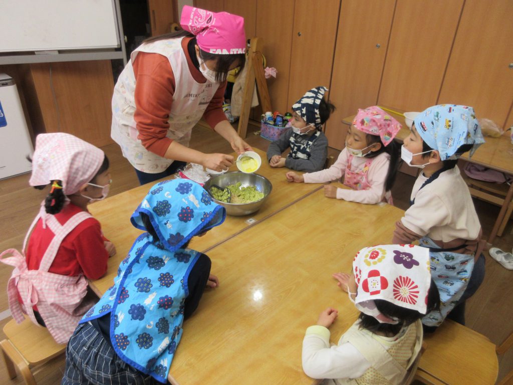 毎日、給食の材料を届けてくださっている方や、園の整備をしてくださっている方など、日頃お世話になっている方々へ感謝の気持ちを込めて、3歳以上児の子どもたちがクラスごとに手分けをして、絵のプレゼントを作成しました。すみれ組、ひまわり組の様子をお伝えします。
